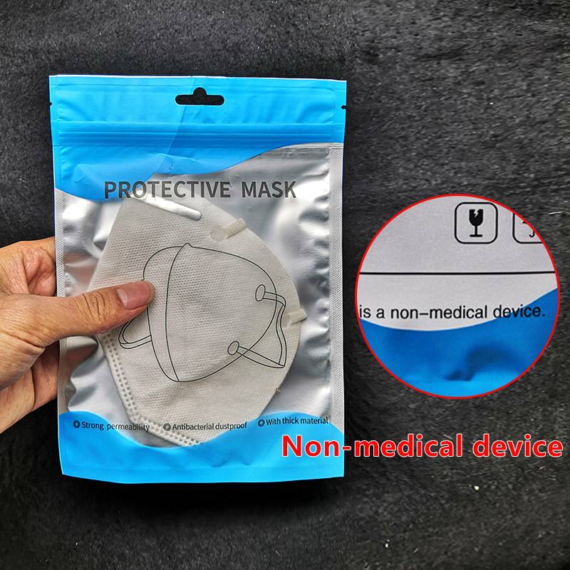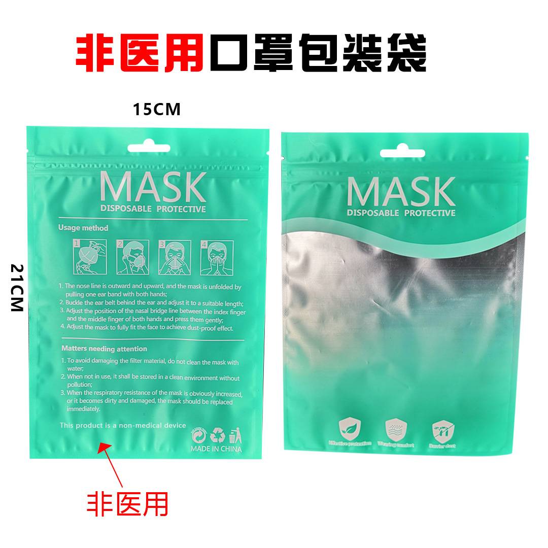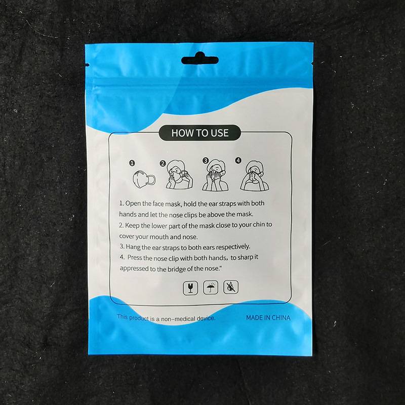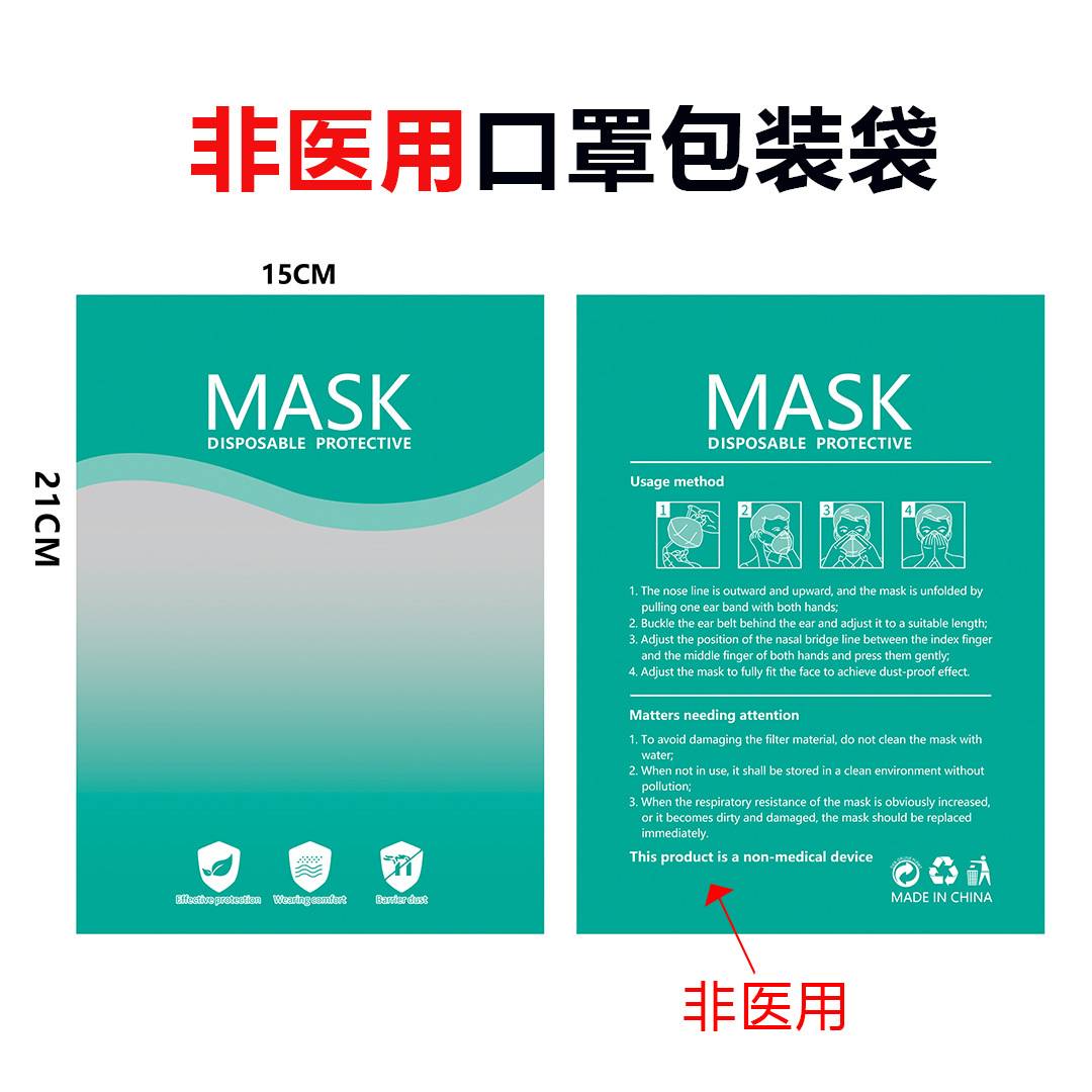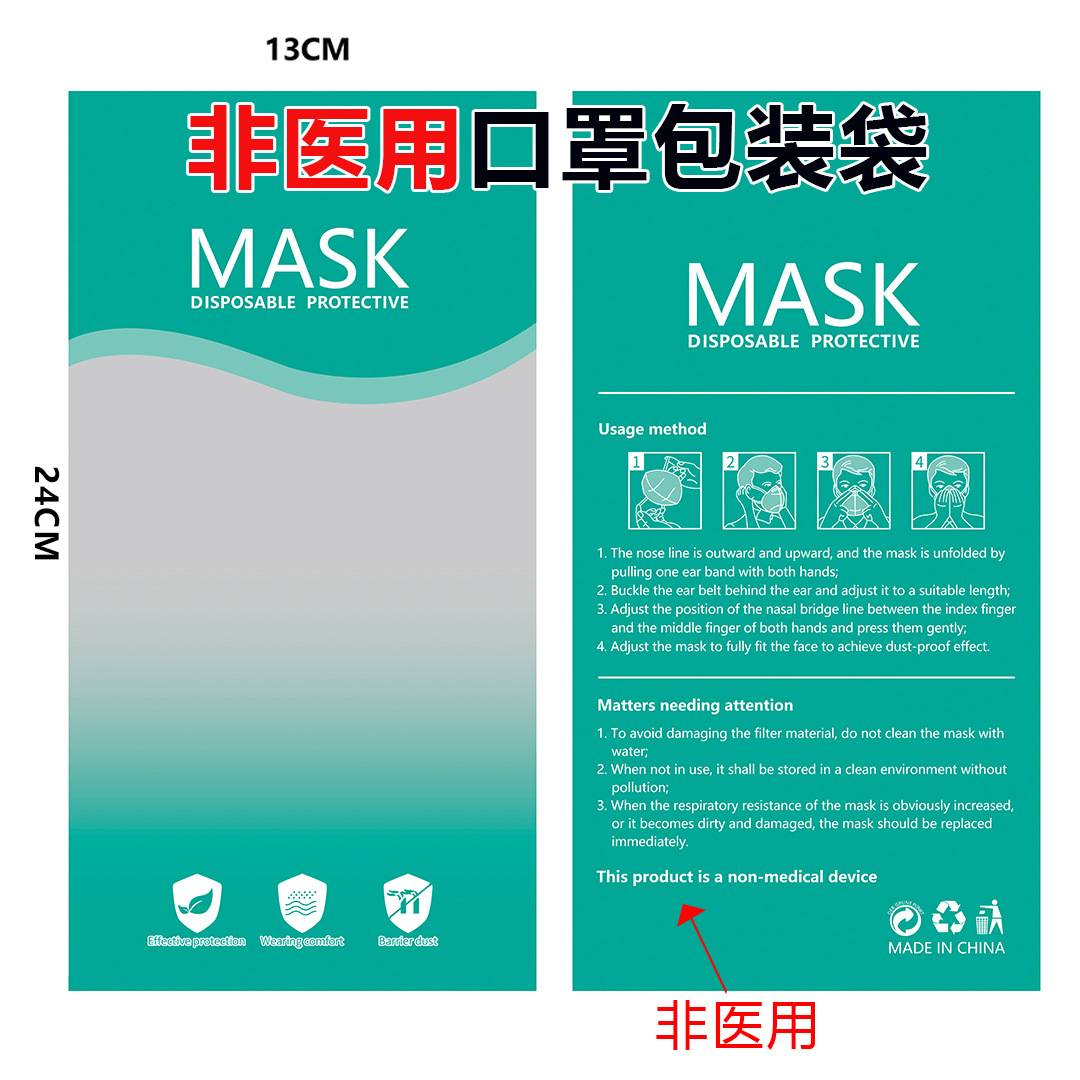 现货一次性口罩包装袋子彩色KN95口罩阴阳骨袋外贸英文口罩塑封袋
