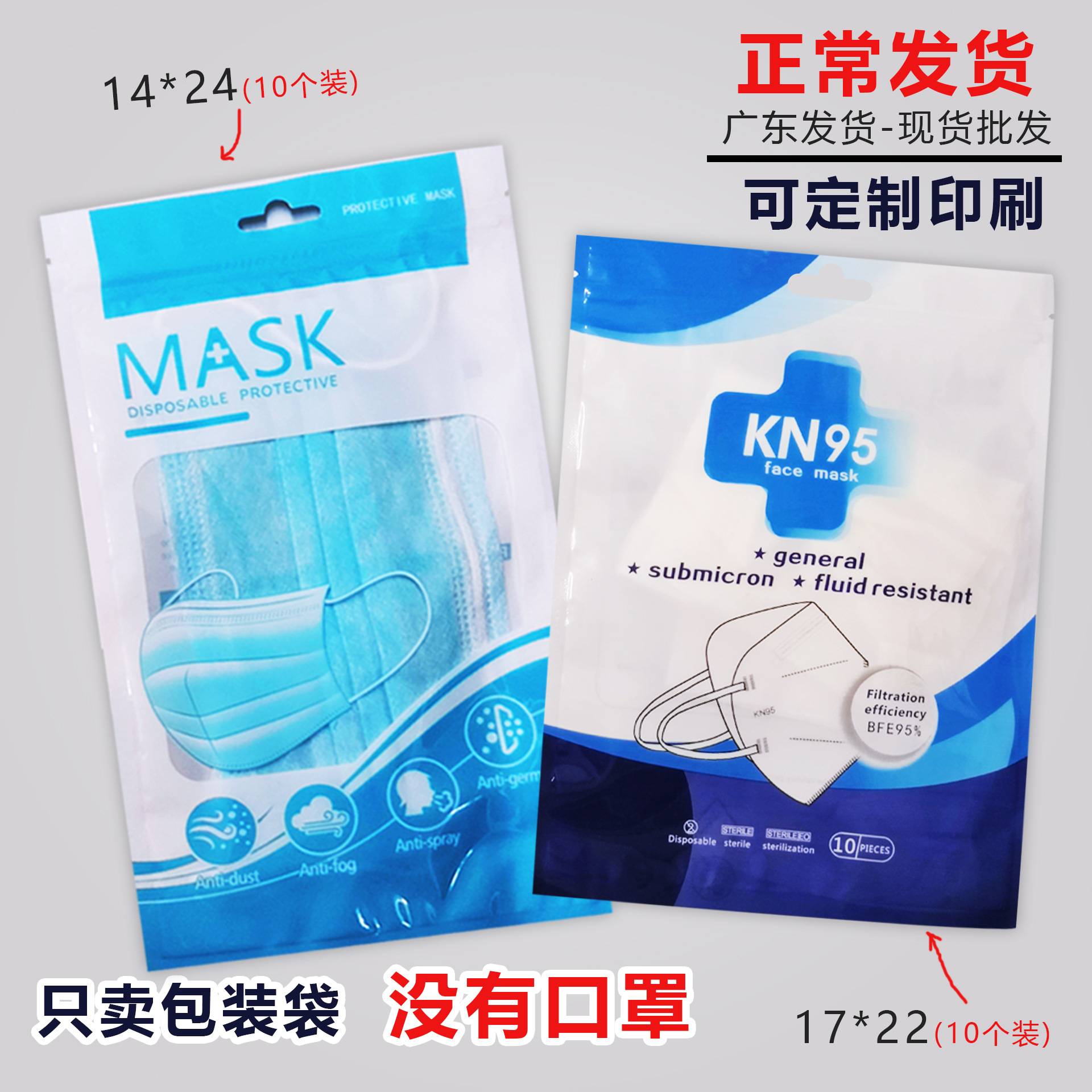 现货通用型一次性kn95口罩包装袋英文口罩袋子塑料袋厂家批发直销
