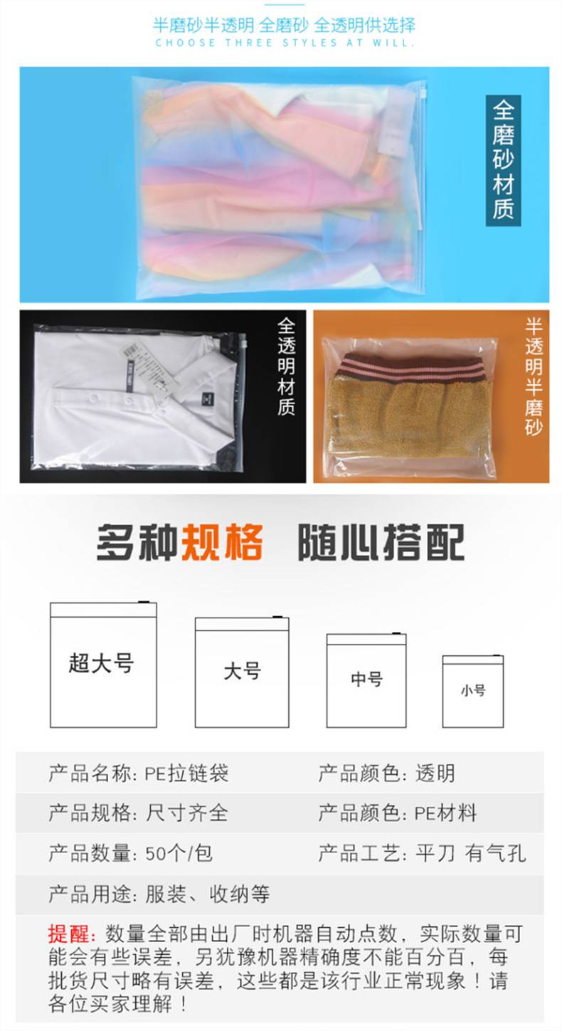 磨砂透明拉链袋内衣裤服装包装袋塑料自封袋童装袜子拉链袋子现货