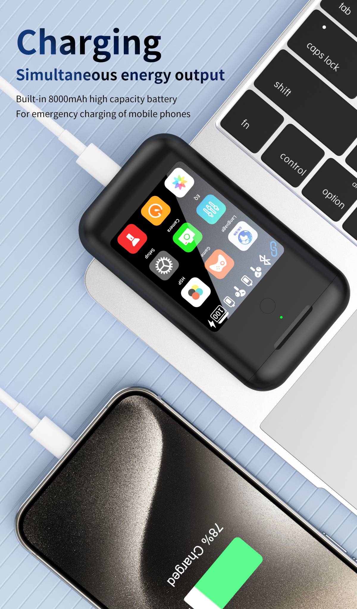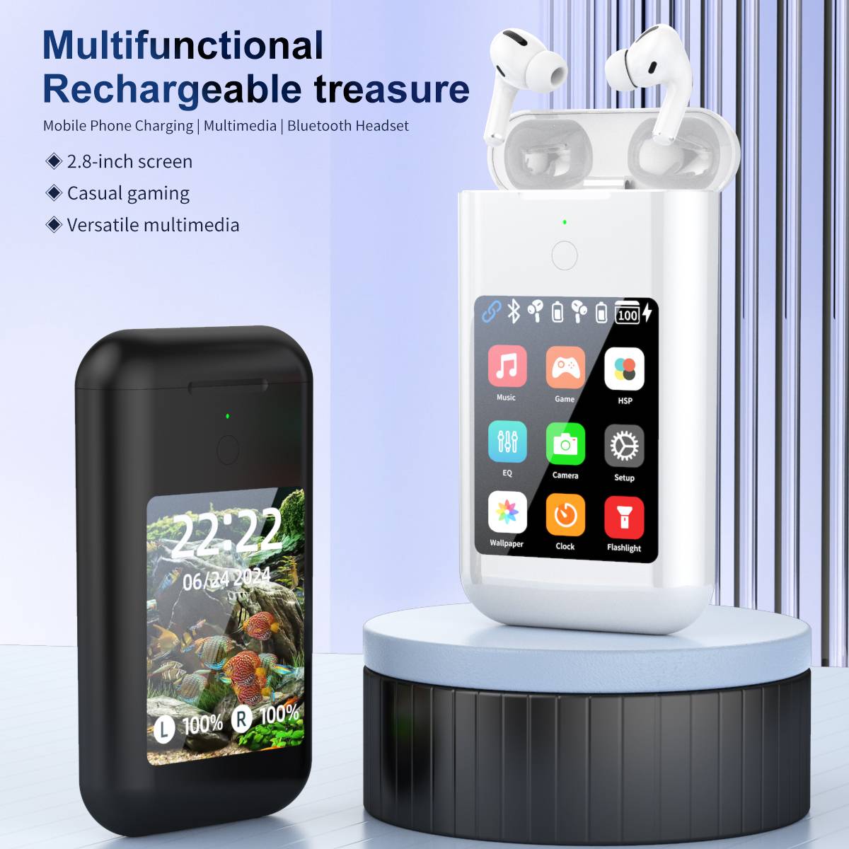 Mobile phone charging, multimedia Bluetooth earphones, emergency flashlight, portable game console