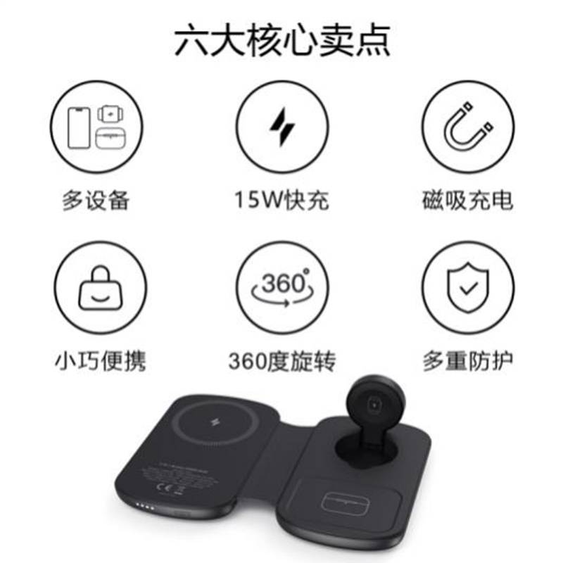 Three in one metal wireless charging base rotating 15W magnetic wireless charger bracket fast charging MX-CD12S