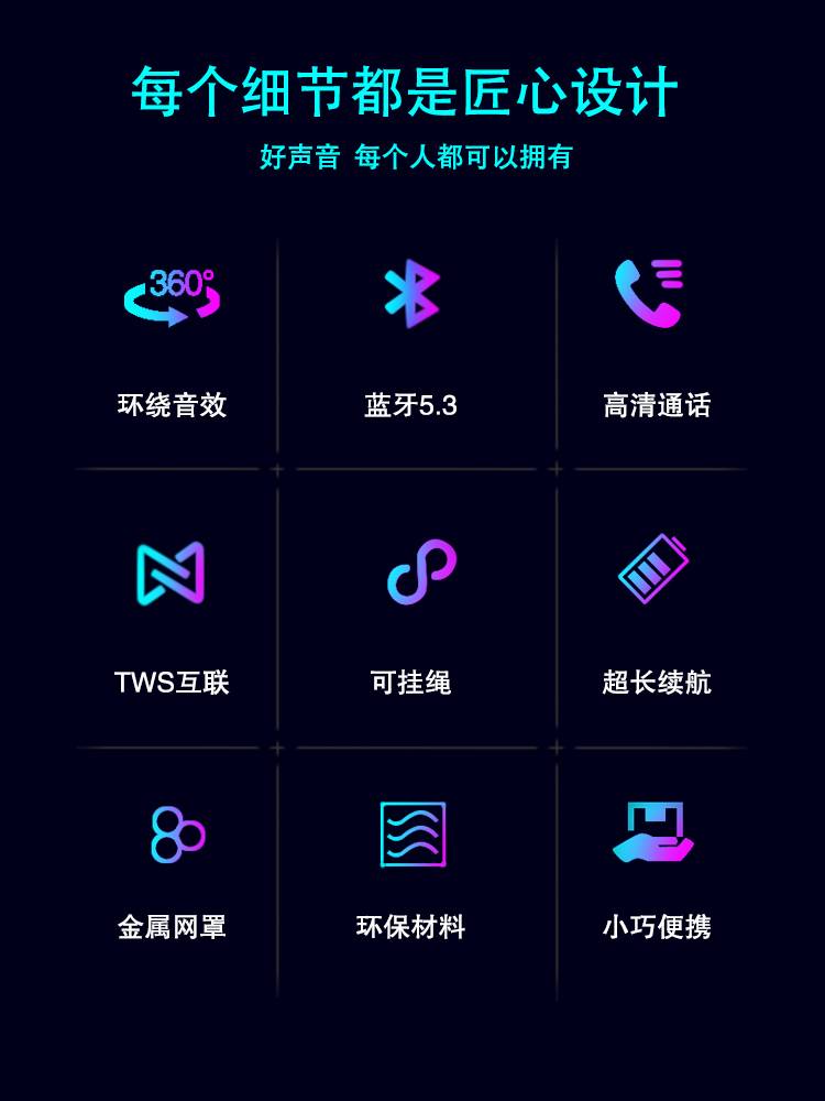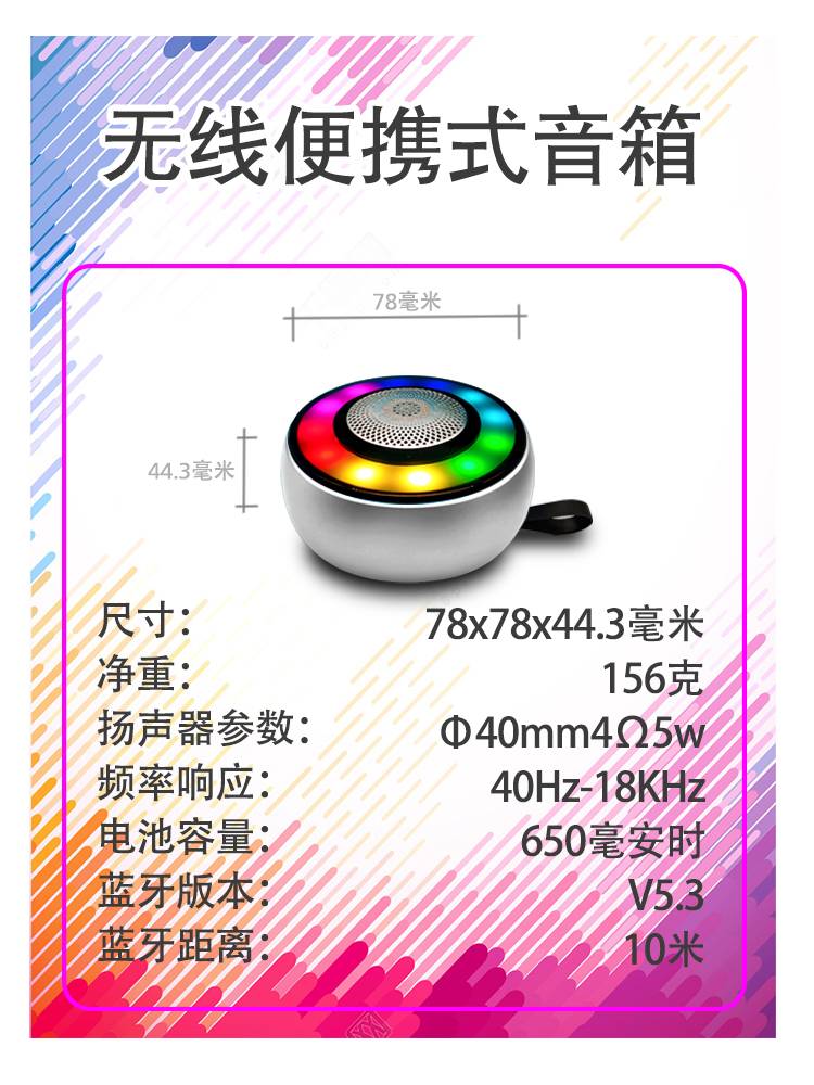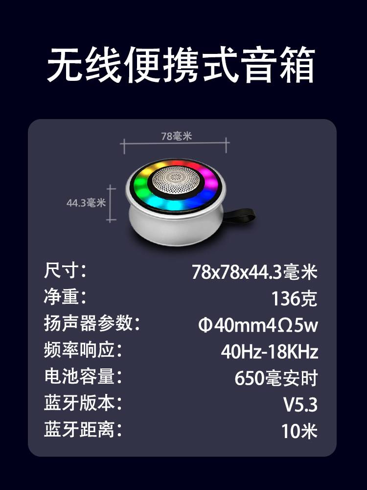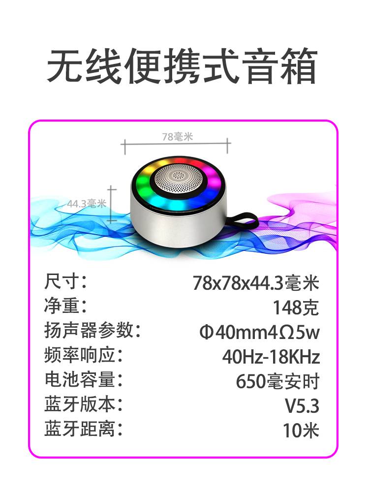 Wireless portable speaker with multi-color selection and Dolby Cinema sound effects