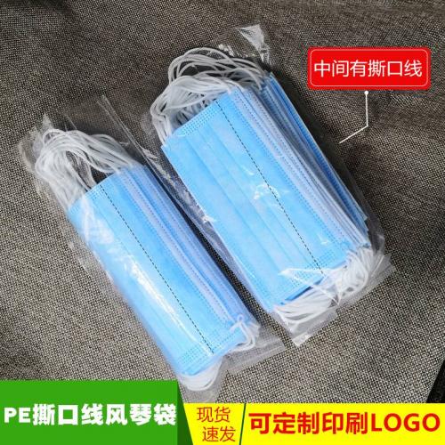 PE撕口线风琴袋透明口罩袋50个装一次性口罩包装袋高压平口袋批发