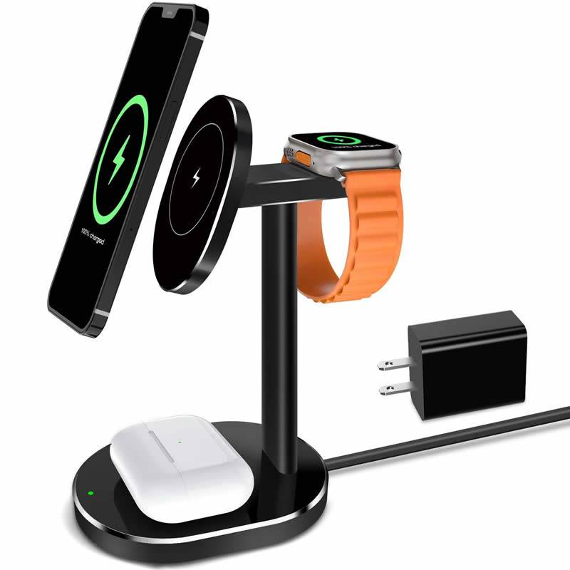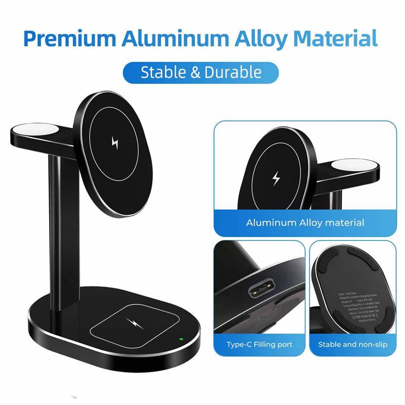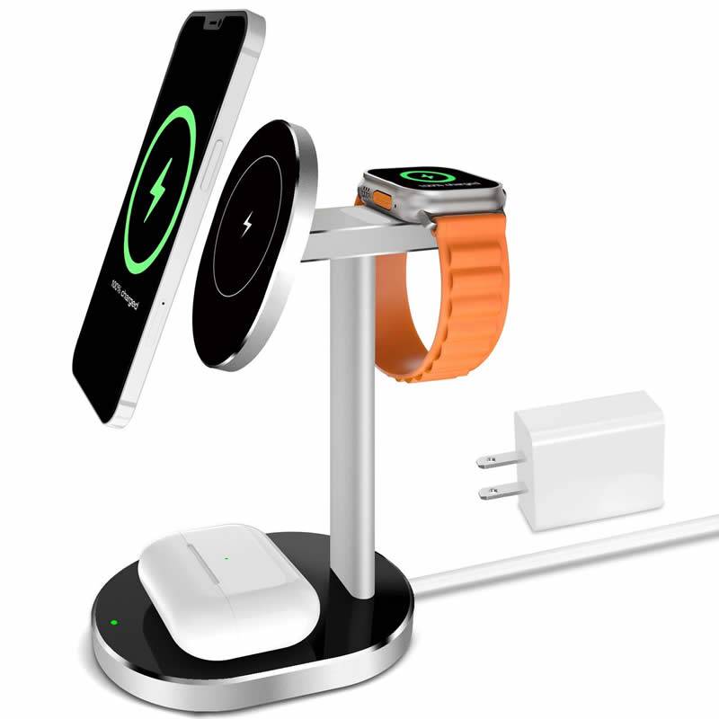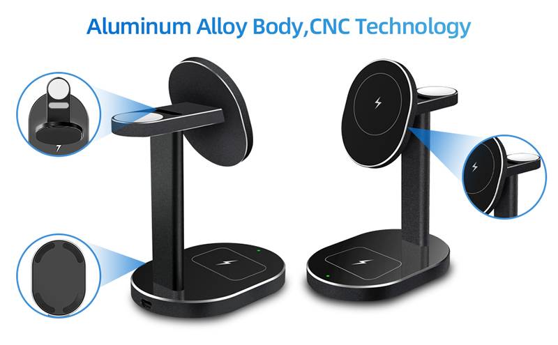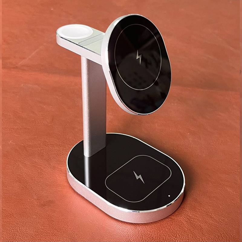 Three in one metal wireless charging base rotating 15W magnetic wireless charger bracket fast charging MX-CD12S