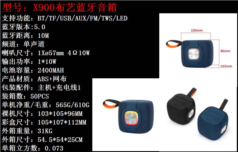 Fabric Mini Outdoor Bluetooth Speaker X950