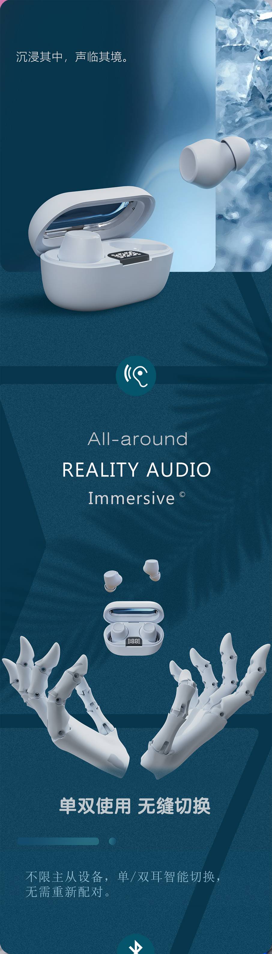 Intelligent noise cancelling Bluetooth earphones V16
