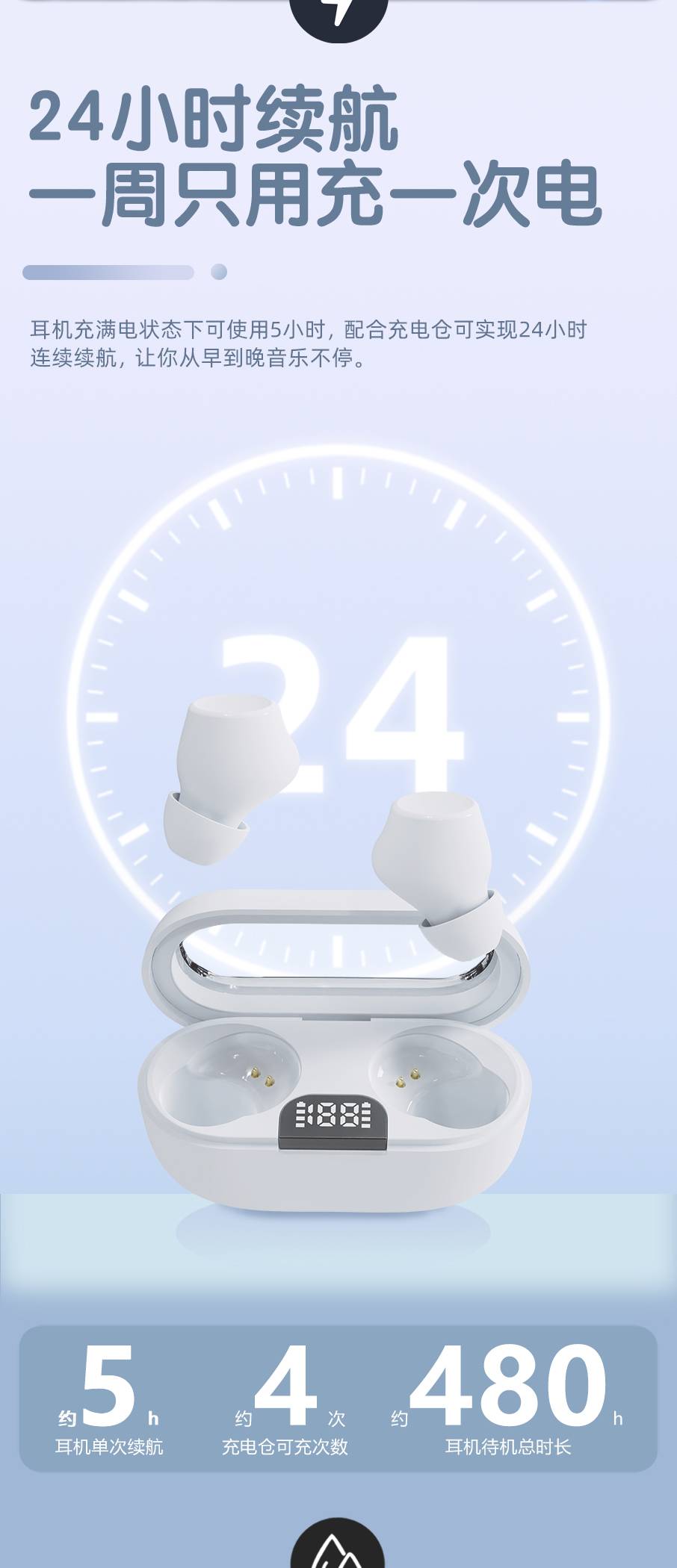 Bluetooth earphones, wireless high battery, ultra long battery life, sports ear clip S06
