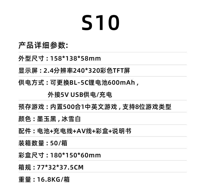 S10 handheld game console, 520 controllers, handheld all-in-one machine, nostalgic retro arcade, single and double playe