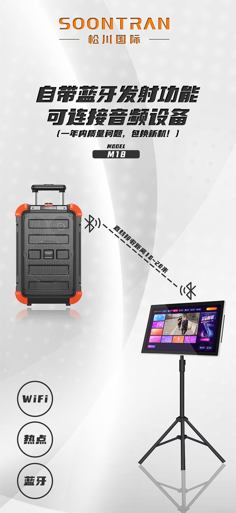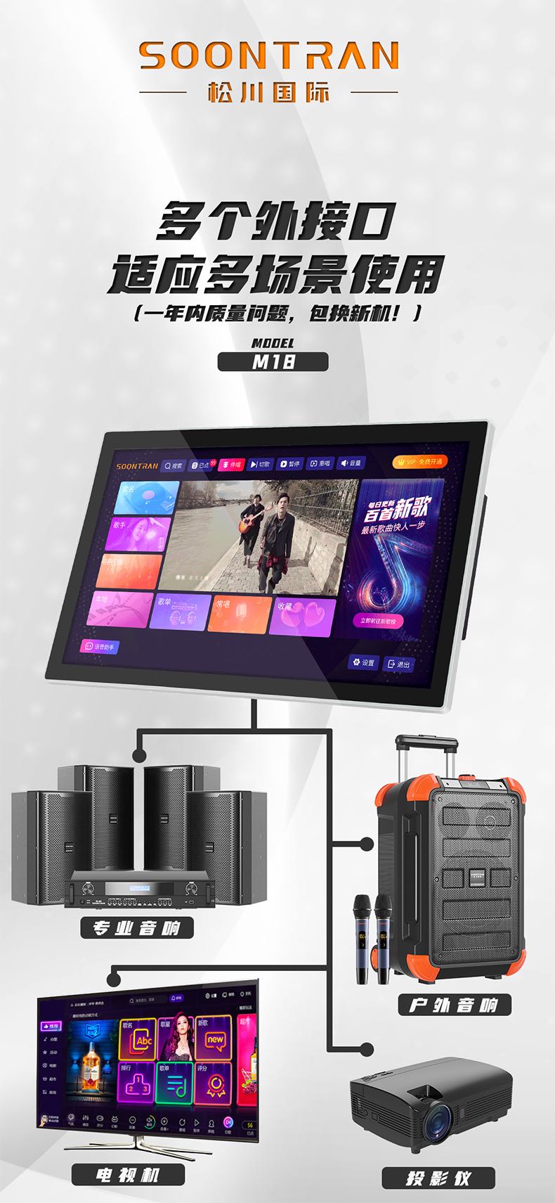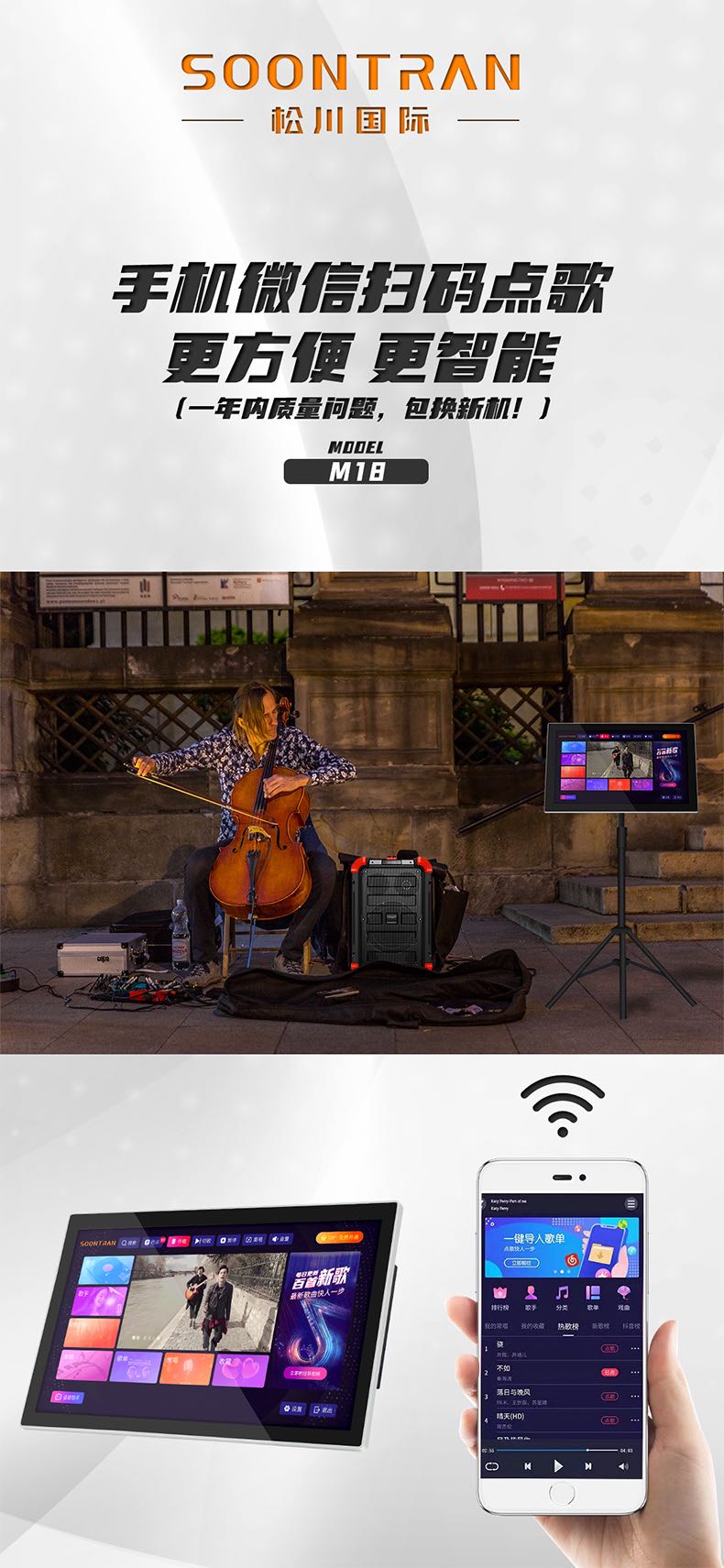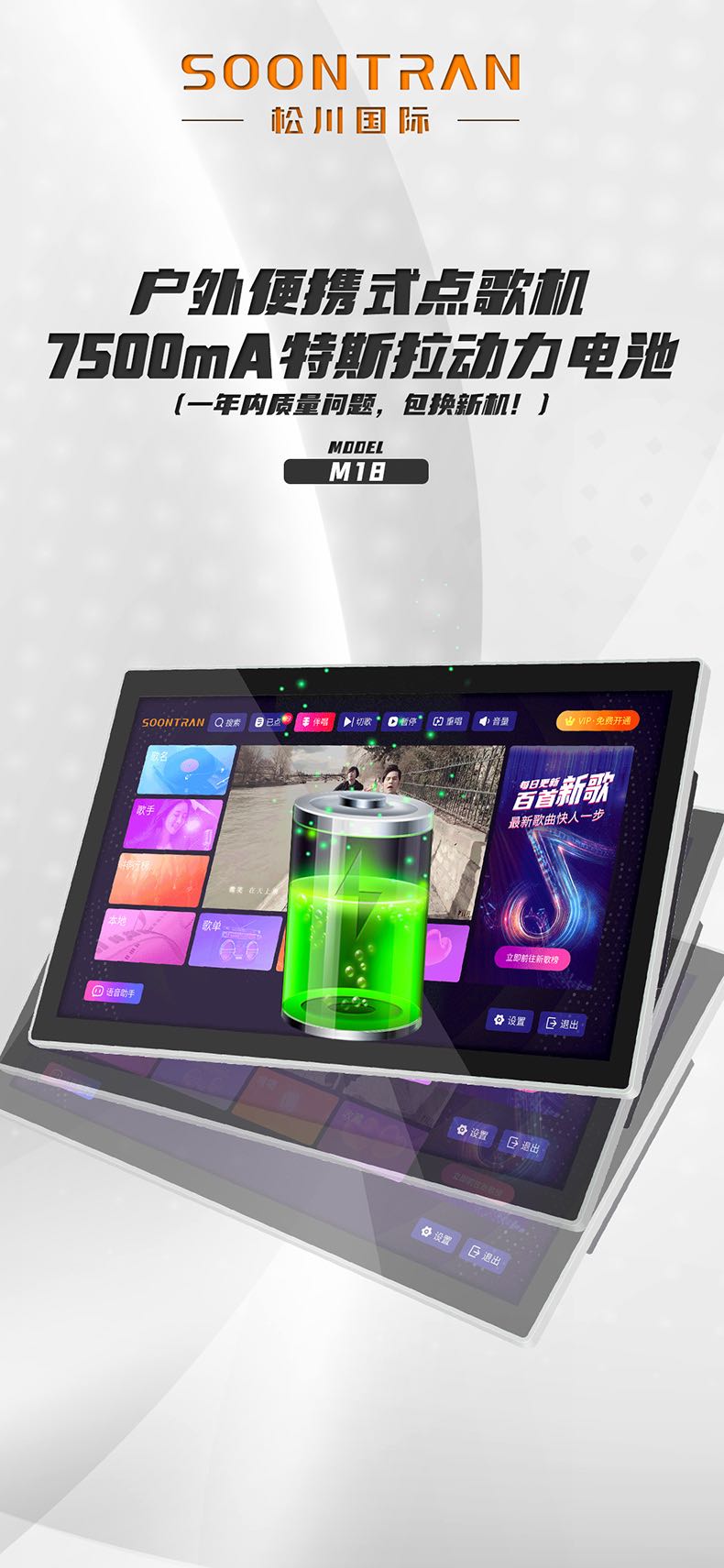 松川国际M18智能户外移动家用ktv一体触摸屏点歌机点唱机