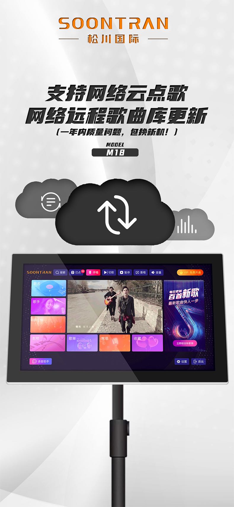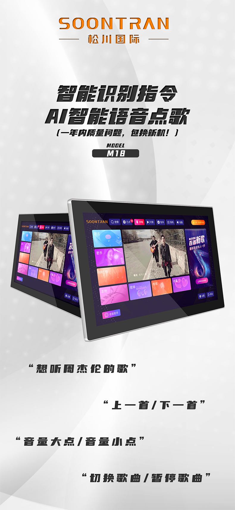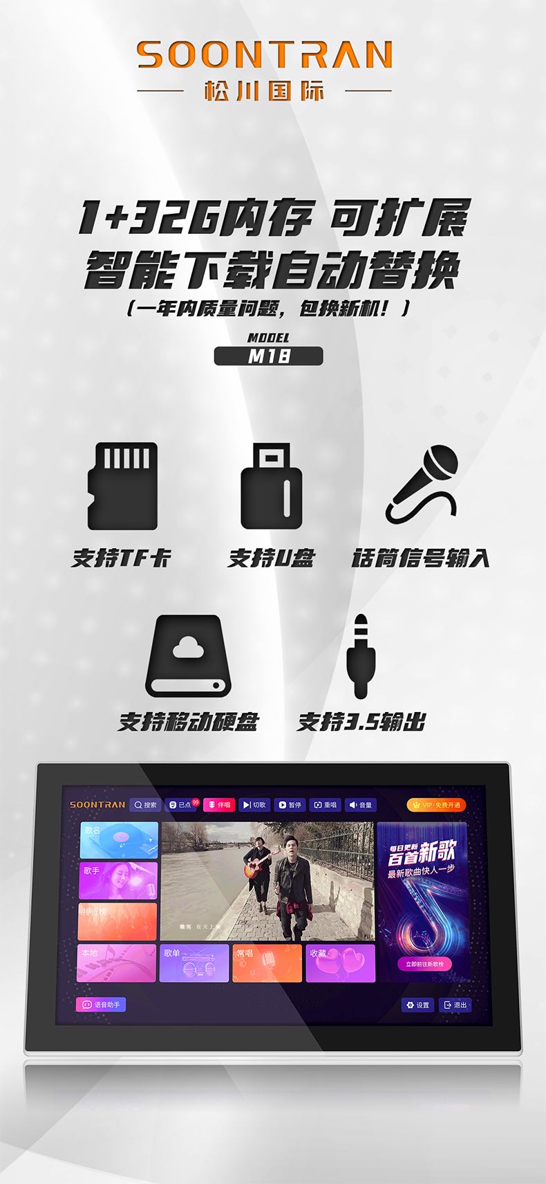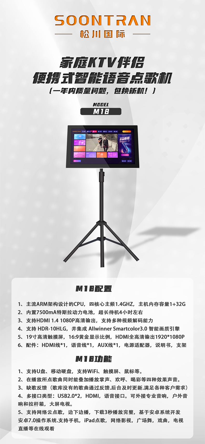 松川国际M18智能户外移动家用ktv一体触摸屏点歌机点唱机
