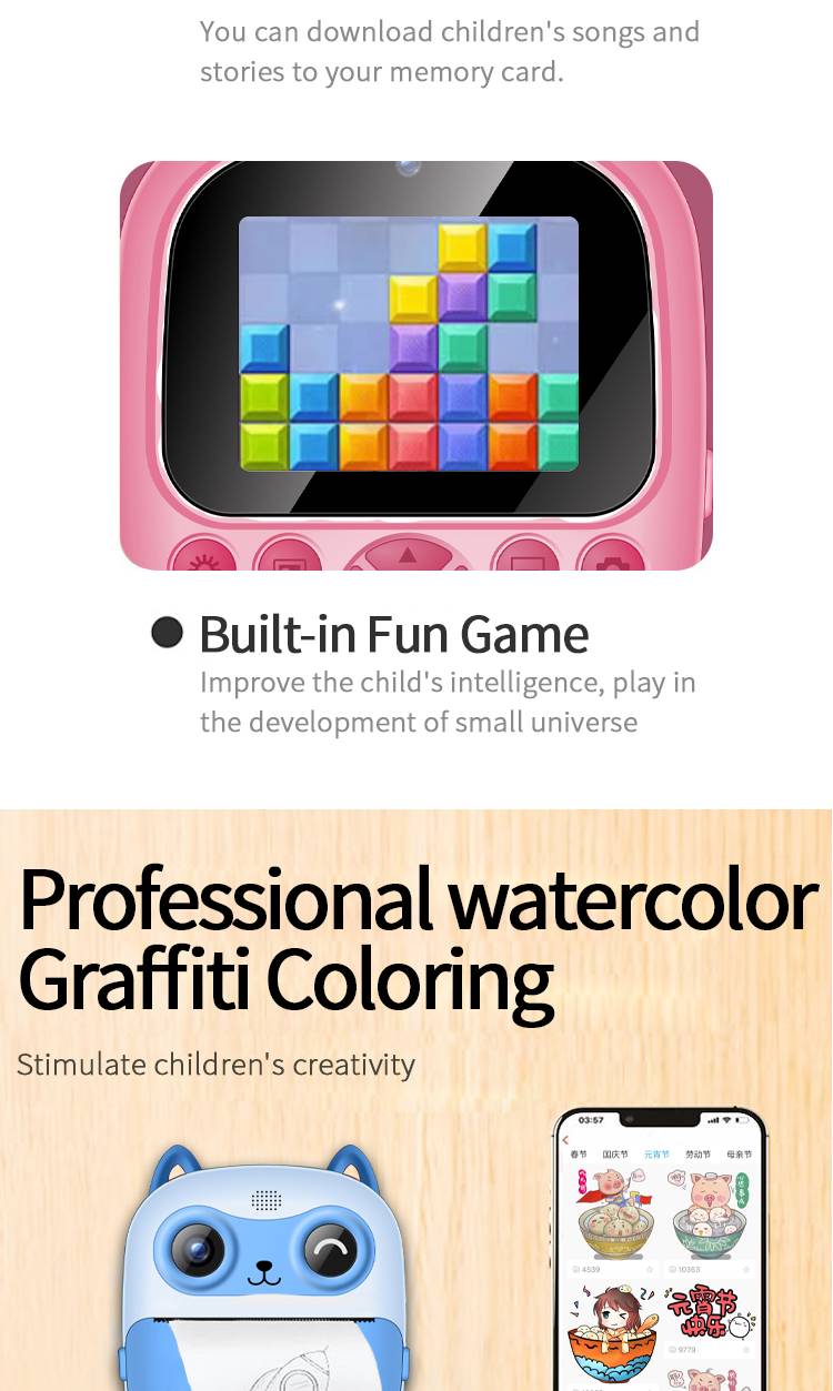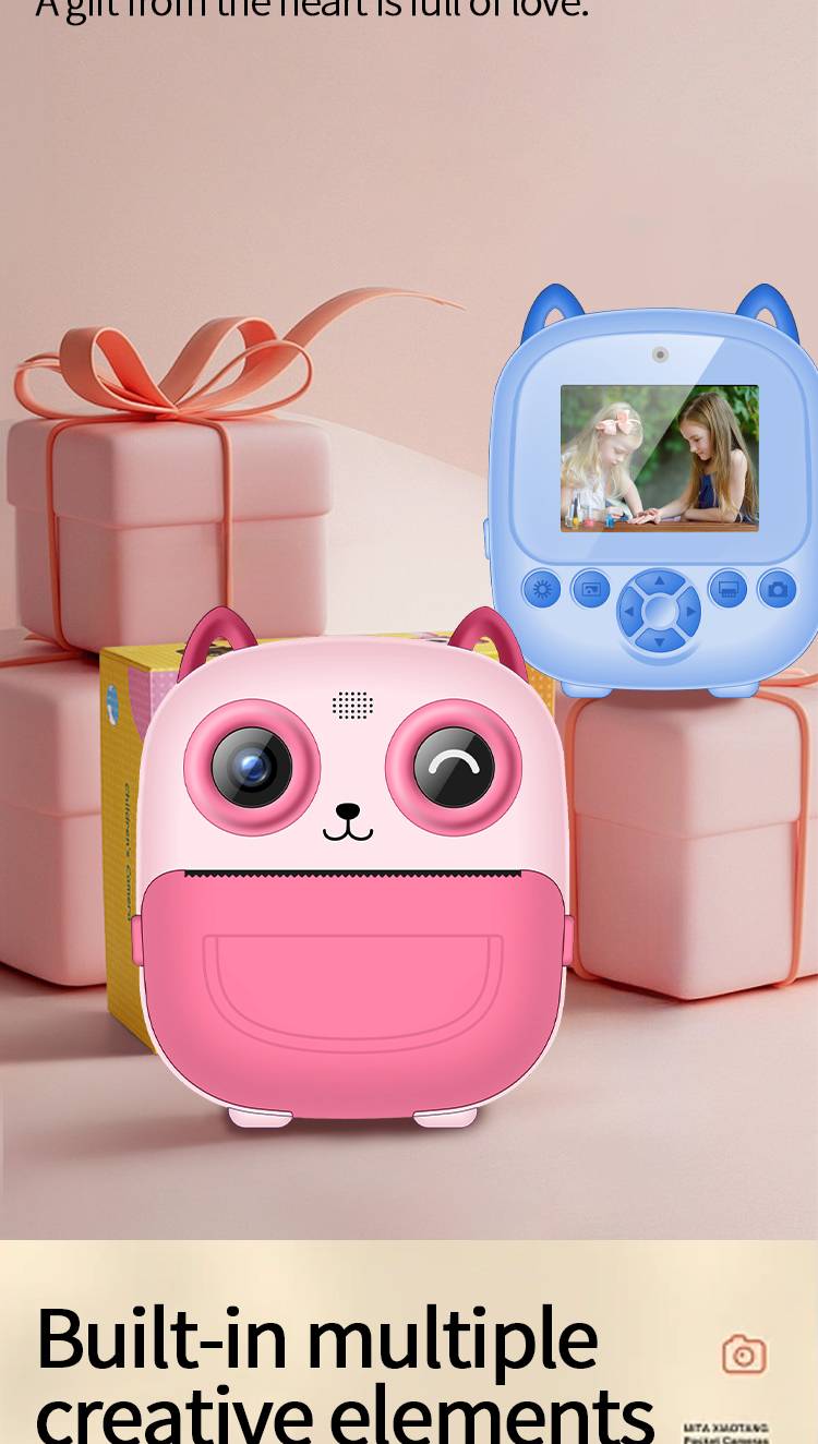 High definition cartoon mini camera vertical camera printing camera children`s camera pc02