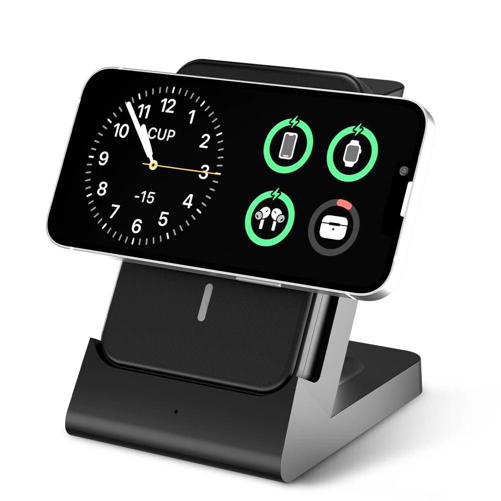 Three in one metal wireless charging base rotating 15W magnetic wireless charger bracket fast charging MX-CD12S