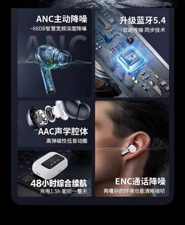 Intelligent noise cancelling Bluetooth earphones V16