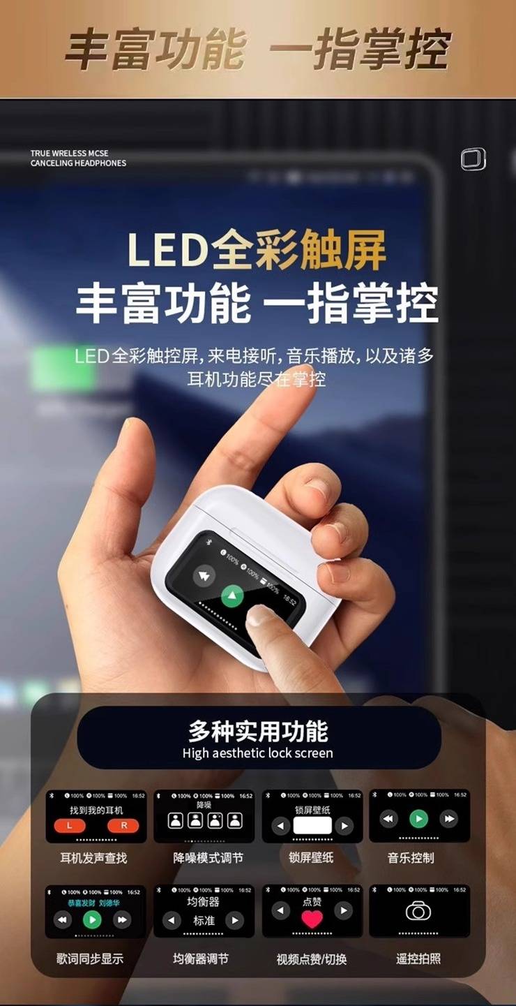 LED full-color touch screen noise cancelling headphones V20