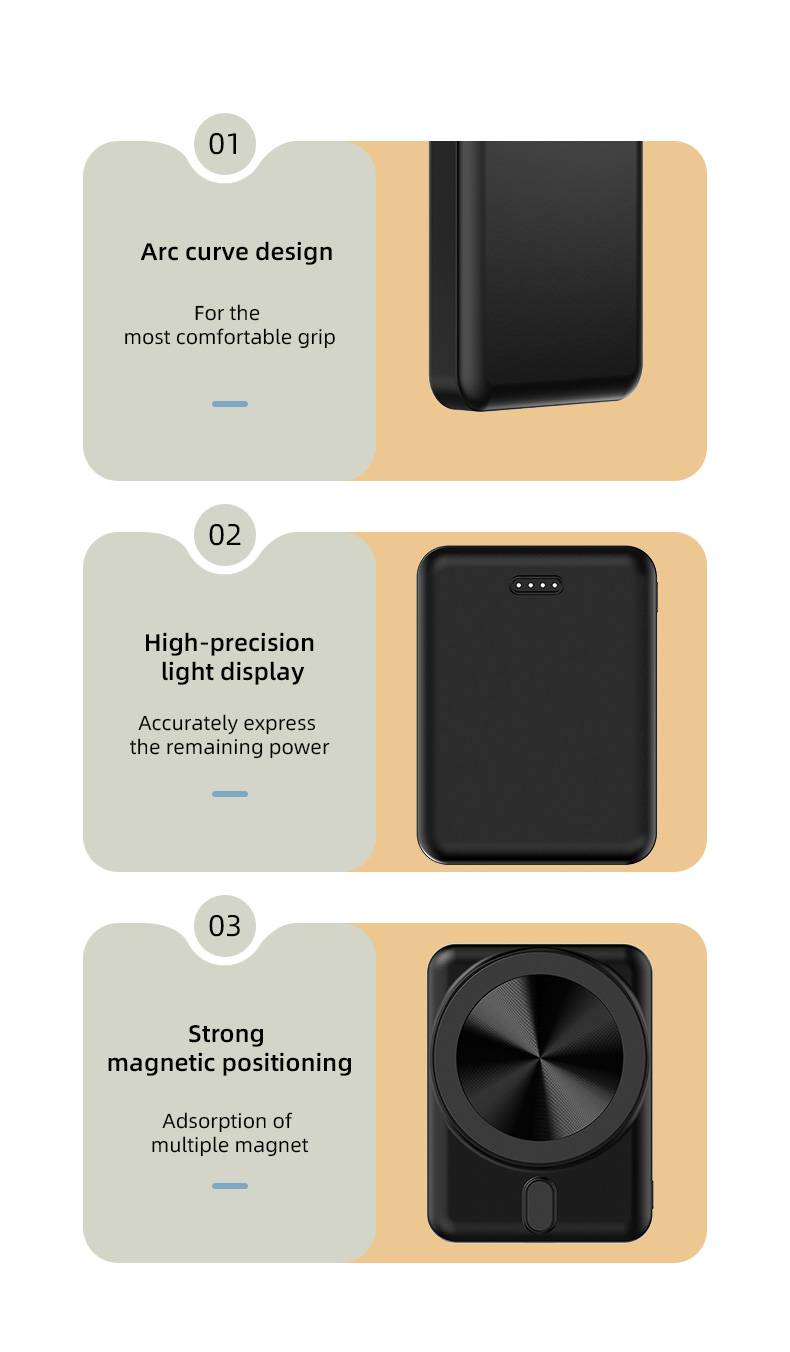 Ultra thin magnetic suction convenient intelligent mobile power bank 5000Amh
