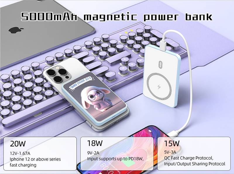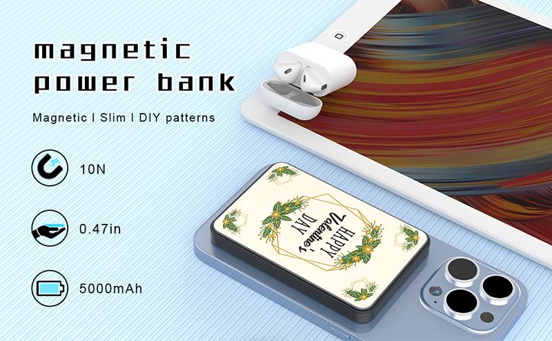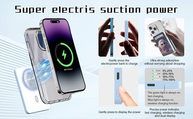 Ultra thin magnetic suction convenient intelligent mobile power bank 5000Amh