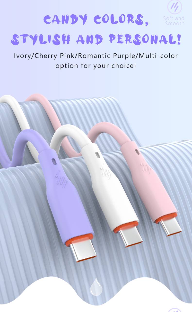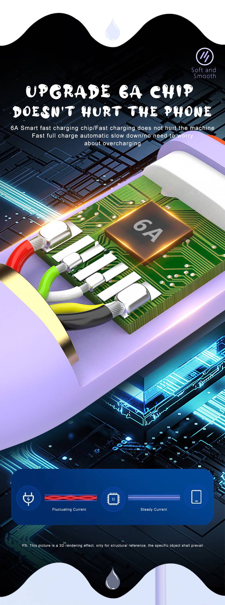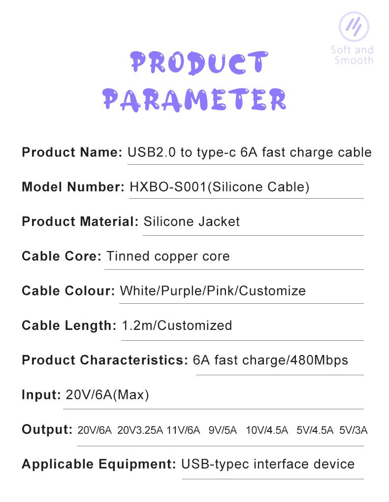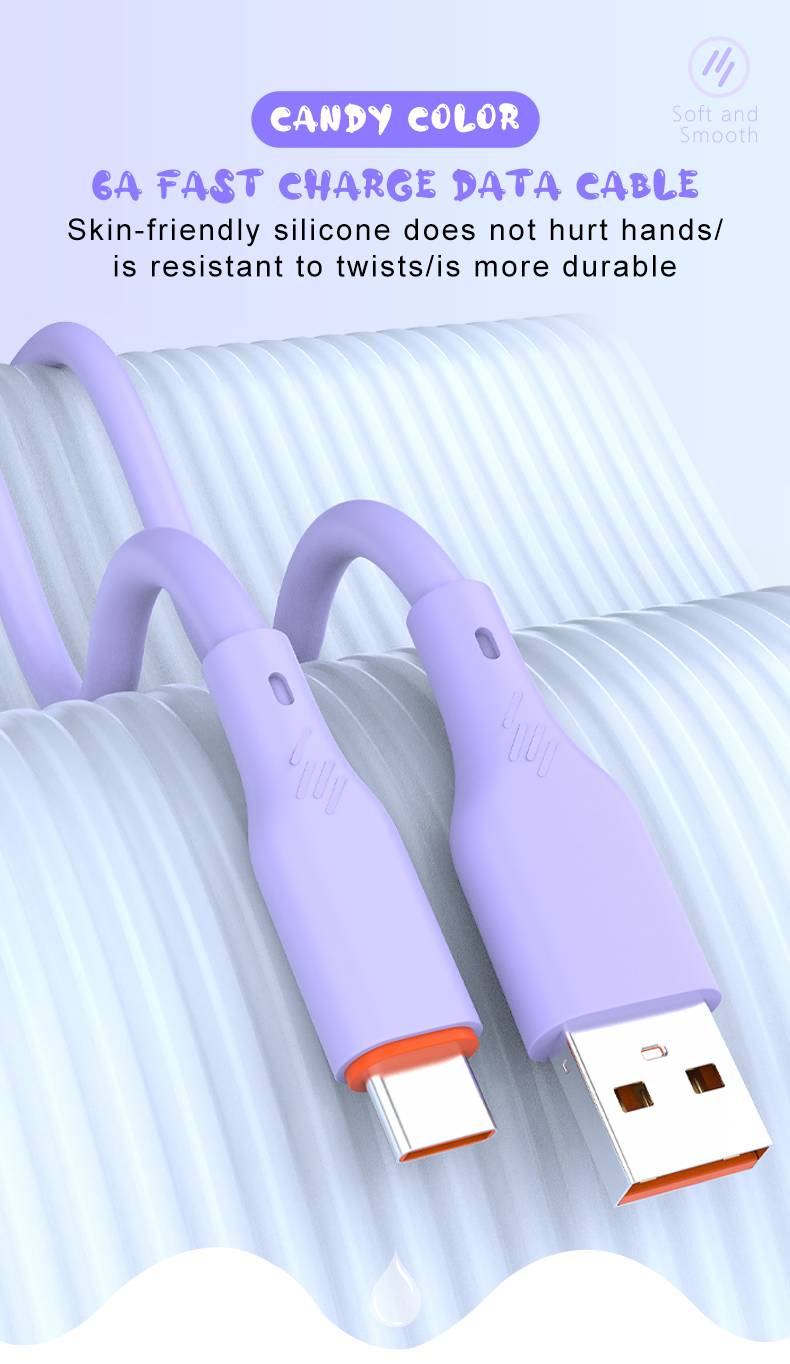 Factory price silicone charging cable Usb-c 6A Super Fast charging line typec quick charge cable for Samsung Huawei cell