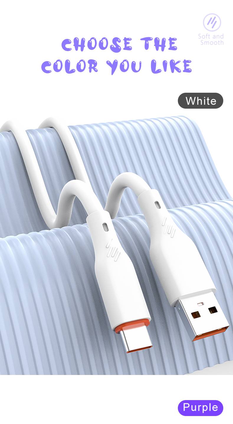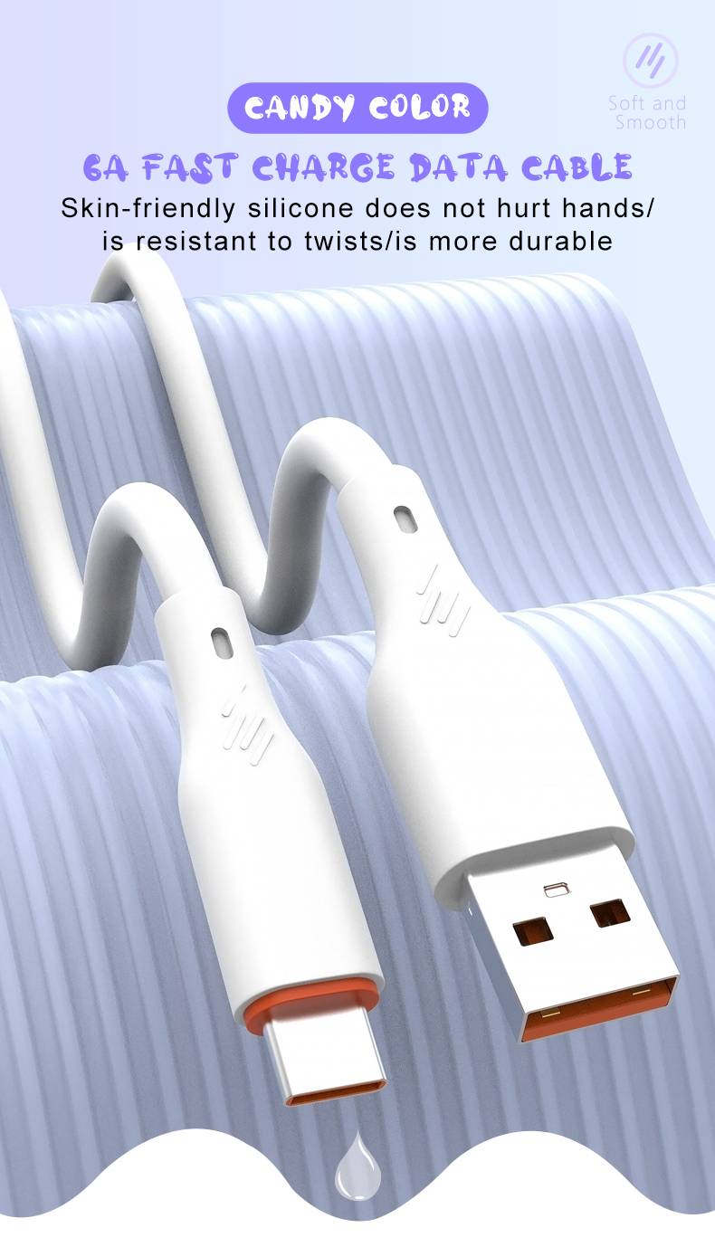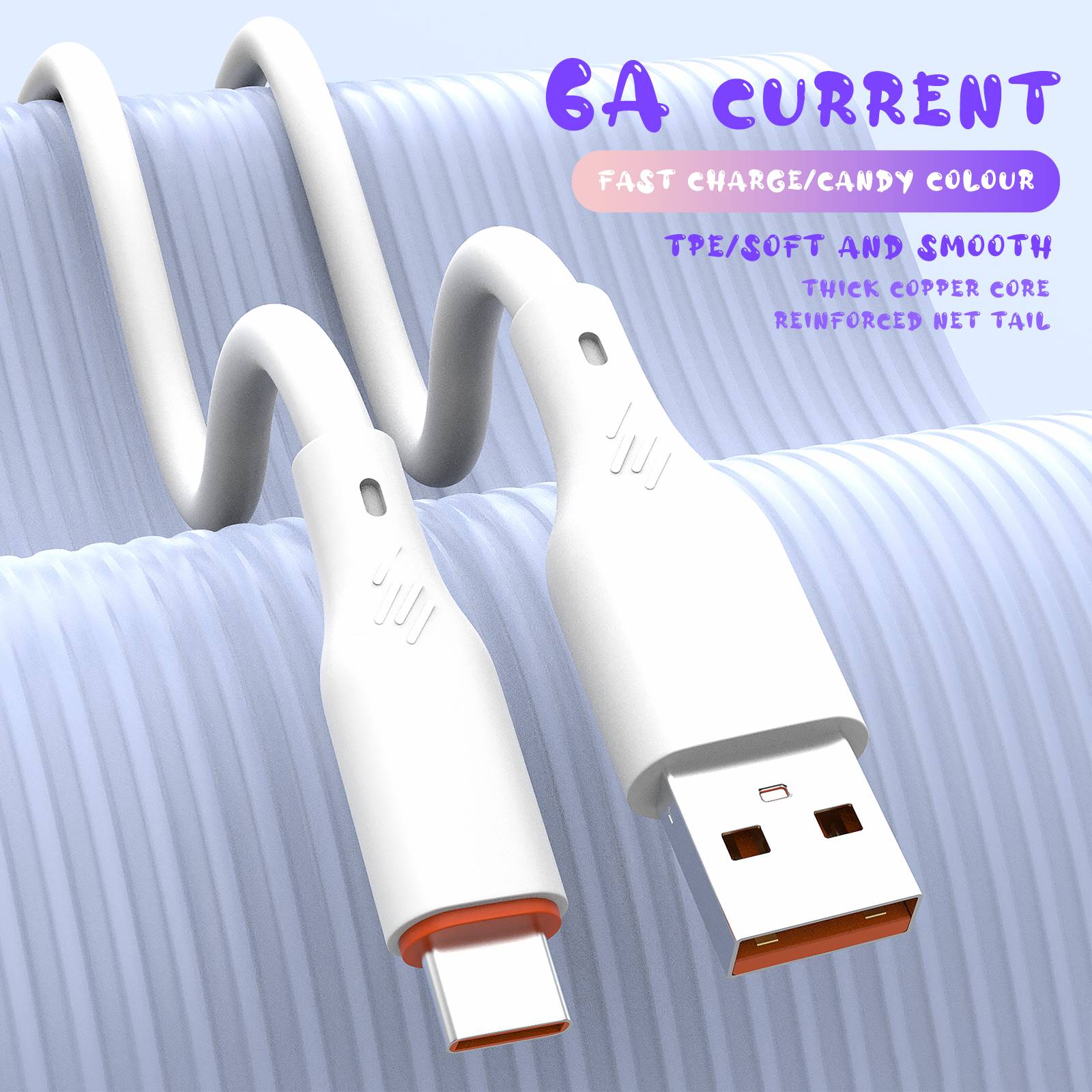 Factory price silicone charging cable Usb-c 6A Super Fast charging line typec quick charge cable for Samsung Huawei cell