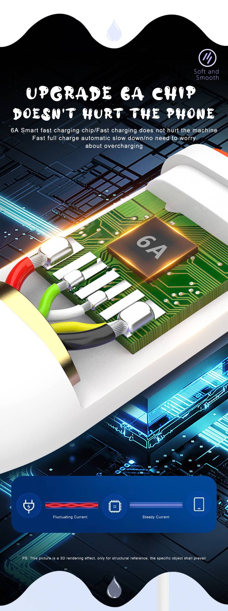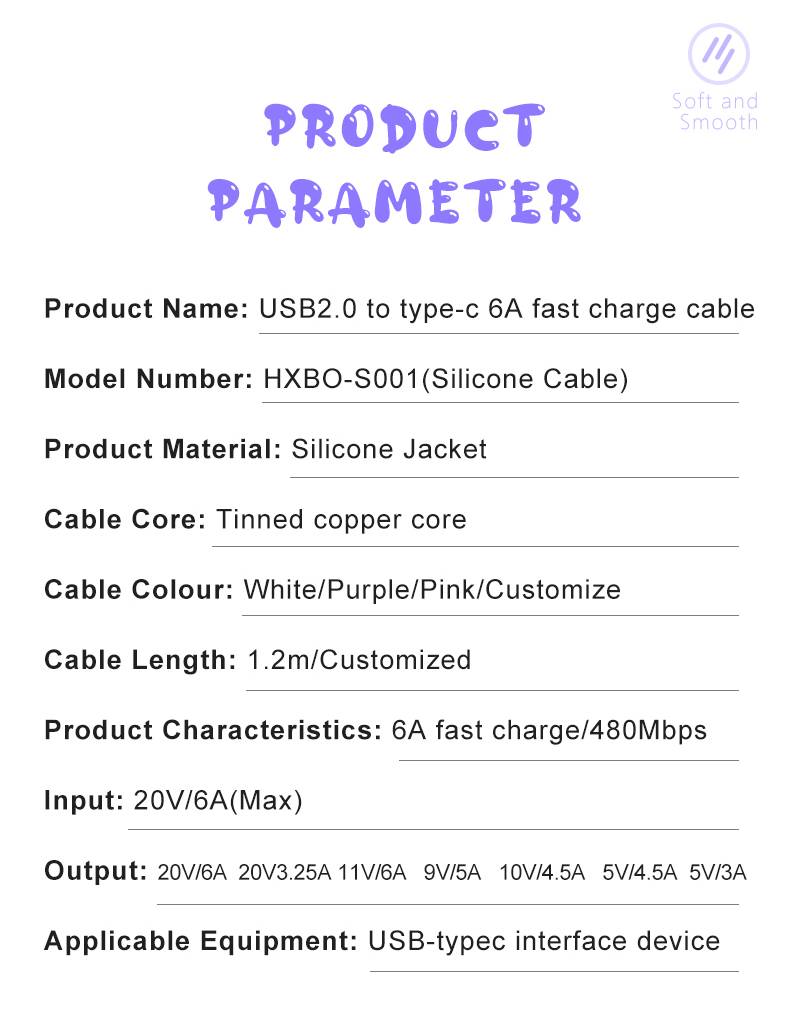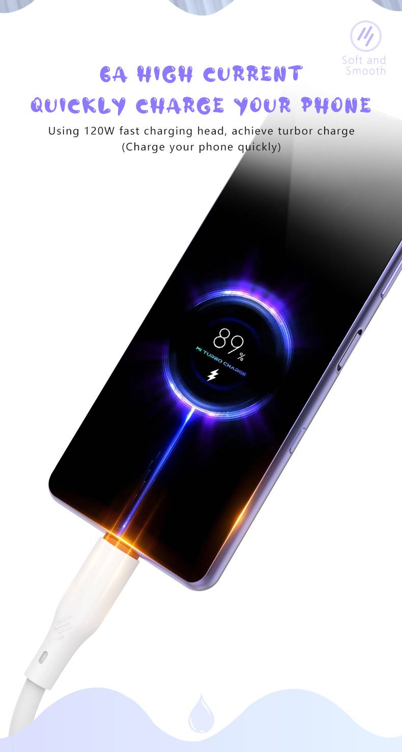 Factory price silicone charging cable Usb-c 6A Super Fast charging line typec quick charge cable for Samsung Huawei cell
