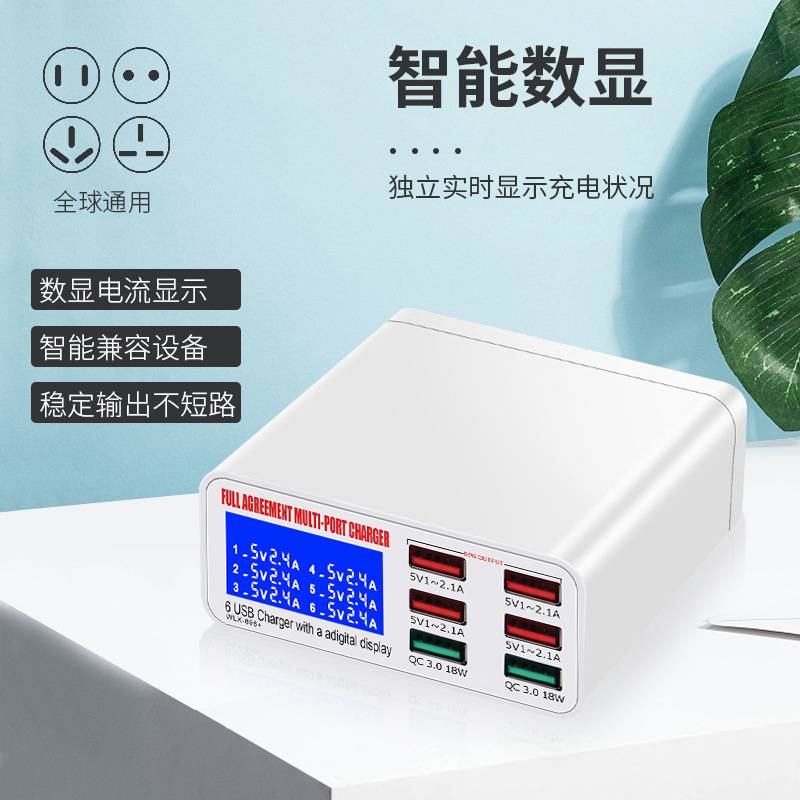 Factory direct sales of 8-port intelligent digital display PD20W fast charging multi port USB charger for mobile phones