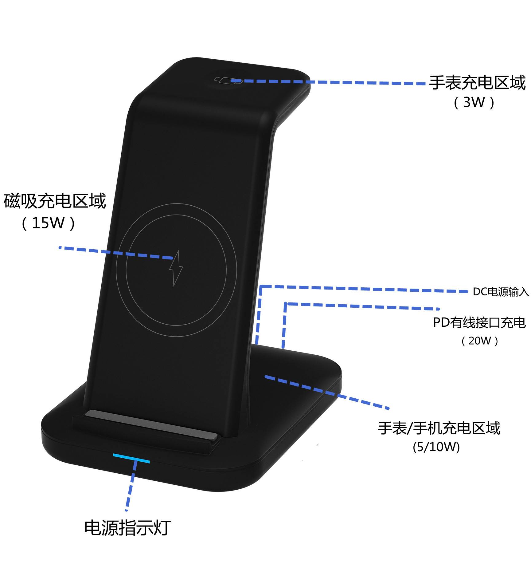 Factory new magnetic three in one wireless charger multifunctional mobile phone headphone watch stand wireless charger P