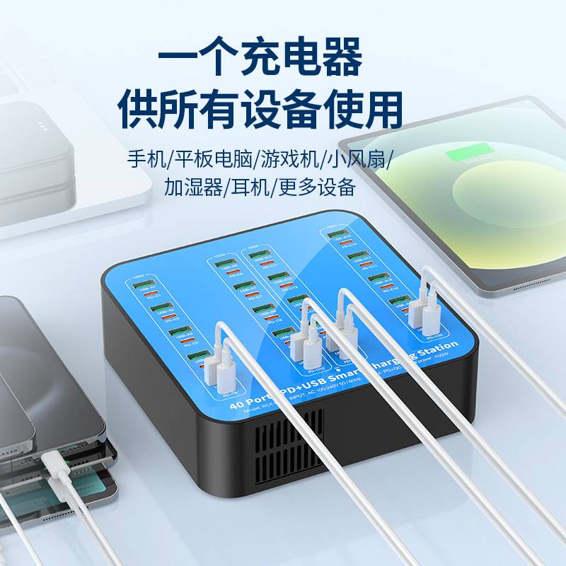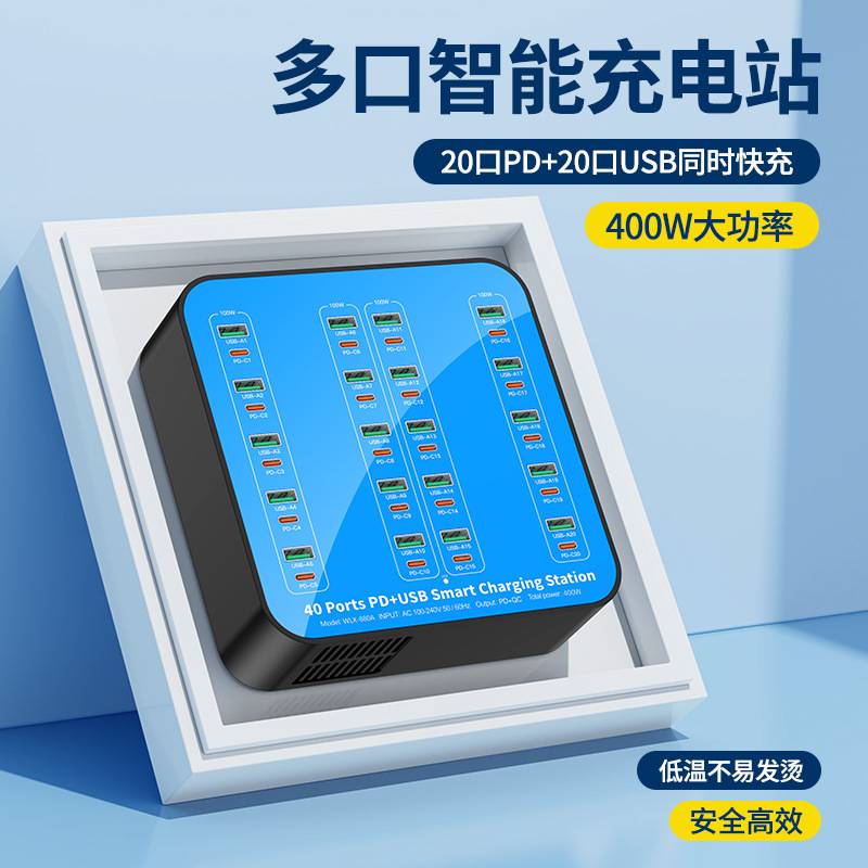 New multi port charging station with 400W high power support for mobile phones, tablets, laptops, and multi port charger