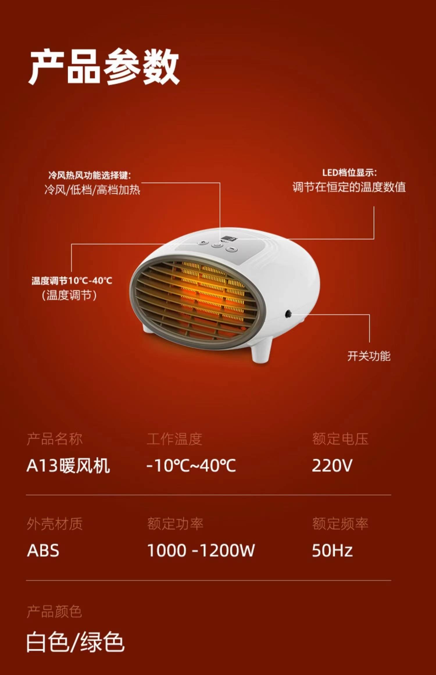 标配版三档调节:冷风档、低热档600W、高热档1200W,高配版增加了数显与恒温