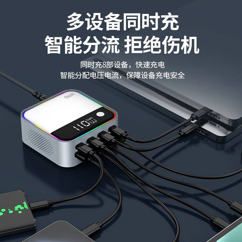 Multi port desktop charger 120W colorful ambient light PD100W fast charging digital display mobile phone laptop multi po