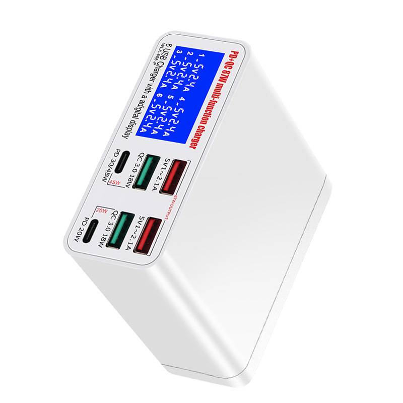 6-port USB charger with high-power PD45W fast charging and QC3.0LDE independent current display charger