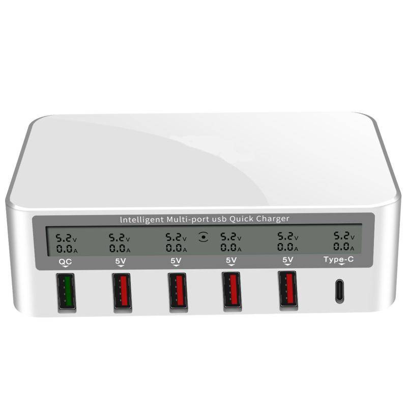 6-port USB mobile phone charger LCD screen independent number display voltage and current QC3.040W fast charging source