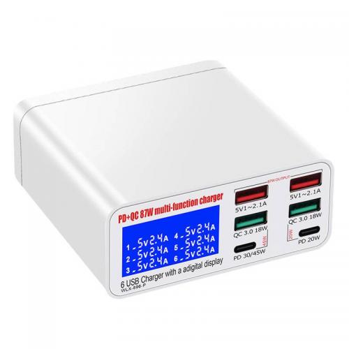 New mobile phone charger intelligent digital display 6-port charger PD65W supports laptop phone charging