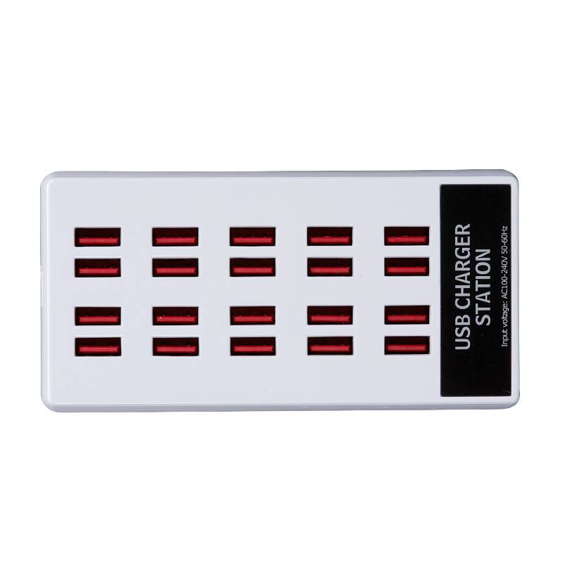 USB multi port charger with 20 ports and 100W power for smartphones, tablets, smart charging, plug in, live streaming st