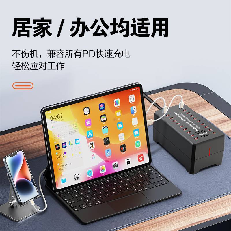 120W desktop charger suitable for office, home, travel, mobile phone fast charging, USB multi socket wireless charger