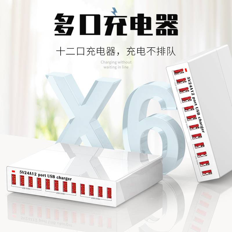 Multi port USB charger 120W, multi port charging station, high-power fast charging, live streaming room, studio, USB mul