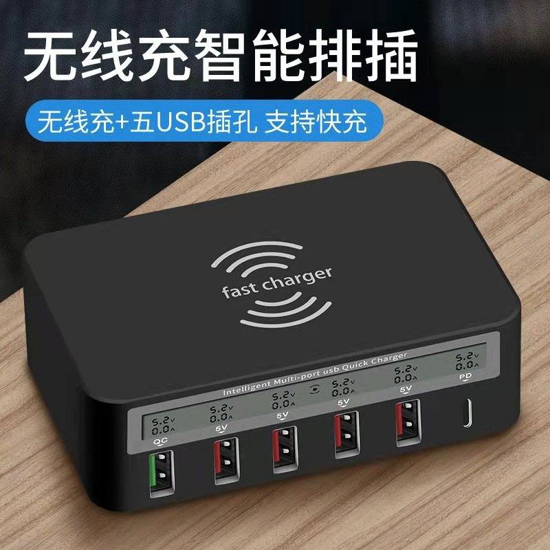 Cross border 6-port USB charger QC3.0 fast charging PD20W wireless charger 15W 3C digital 5V20A