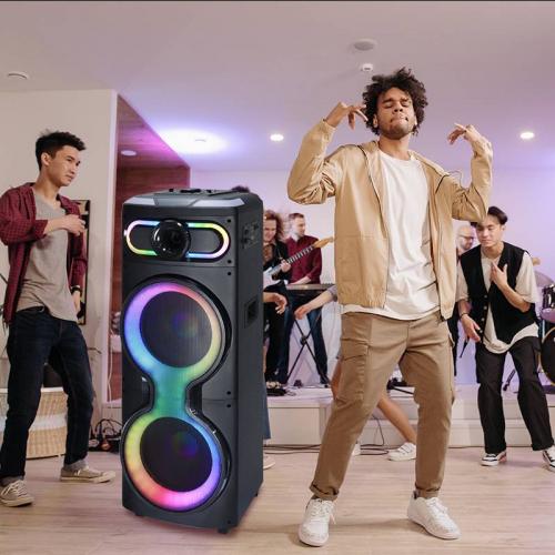 BNIB Portable Powerful Party Speaker Double 12 Inch 1000W Colorful Light Stereo Outdoor Hifi Bluetooth Loud Speaker With