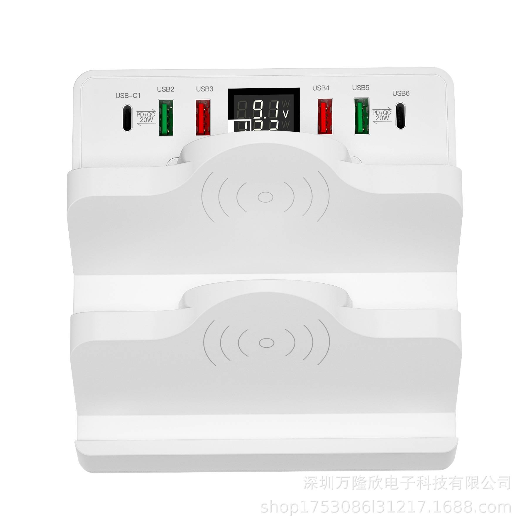 Multi port charger cross-border 65W laptop tablet phone 8-port intelligent digital display charger desktop charging stat
