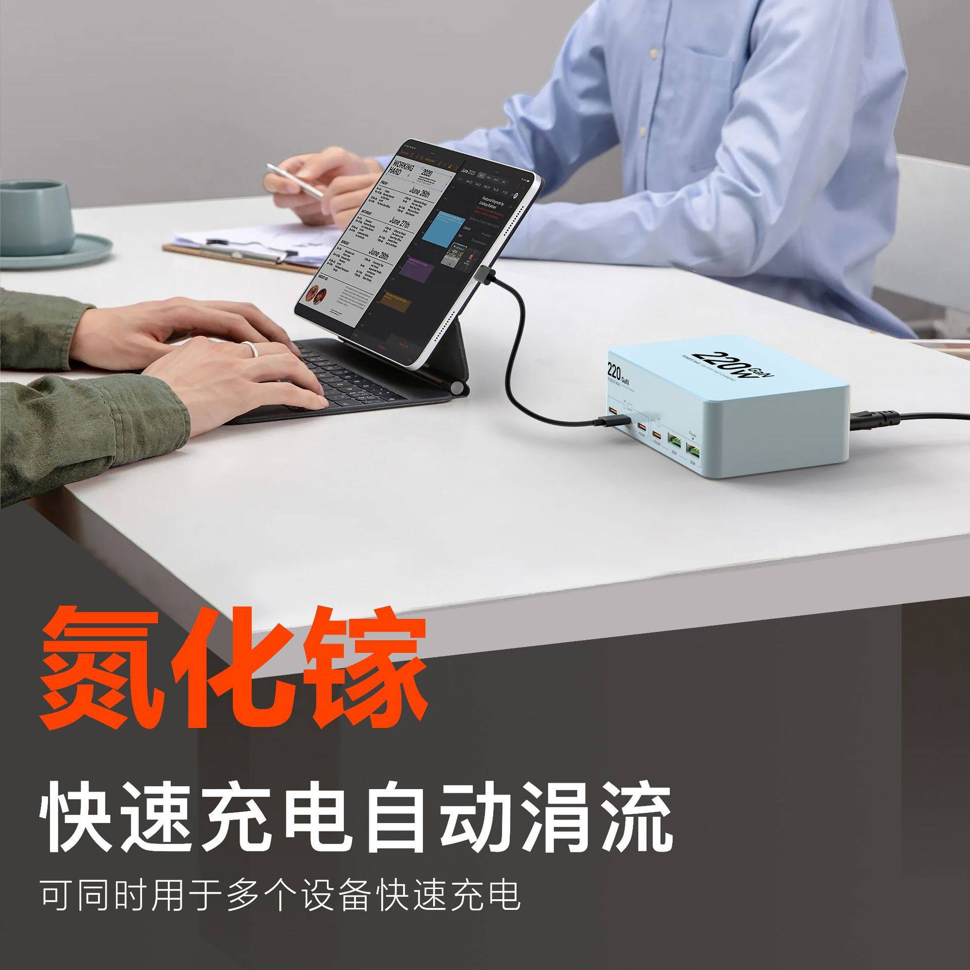 New Gallium Nitride Intelligent Multi Port 220W High Power Laptop Phone Fast Charging Multi Port Charger