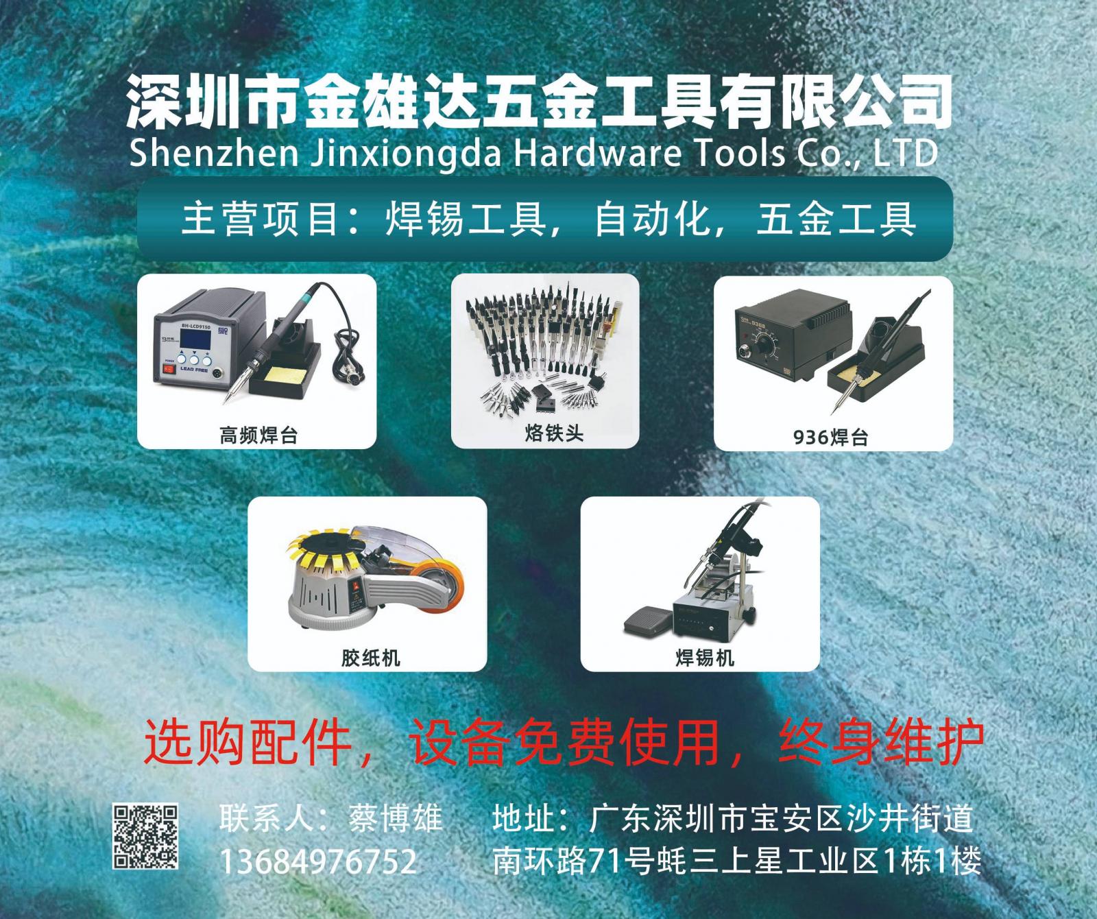 本公司生产焊锡设备、焊接工具、热风枪、五金工具、电子产品、防静电净化产品、智能控制设备,拥有完善的销售网络和售后服务体系。使公司一直秉承“质量求生存,信誉求发展”的经营理念