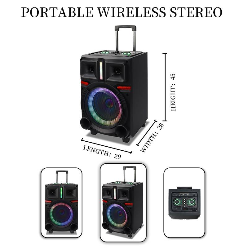 New Electronics BNIB Wooden Karaoke Speakers Wired Mic 12 Inch 1200w Loudspeaker Trolley Bluetooth Speaker