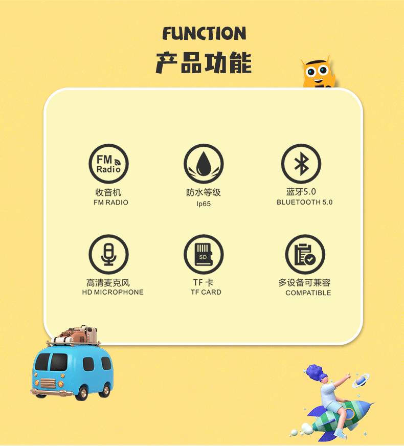 Cartoon wangchai silicone cute childrens mini portable waterproof speaker
