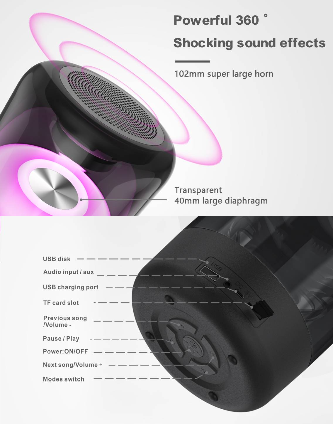 Colorful outdoor Bluetooth speaker with remote control V1008