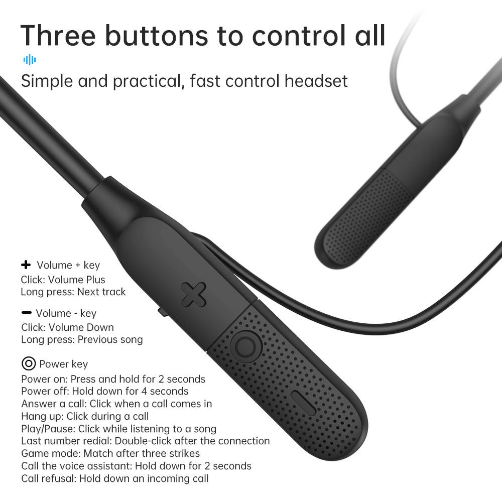 Wireless neckband Bluetooth earphones for sports, with ultra long battery life and large capacity