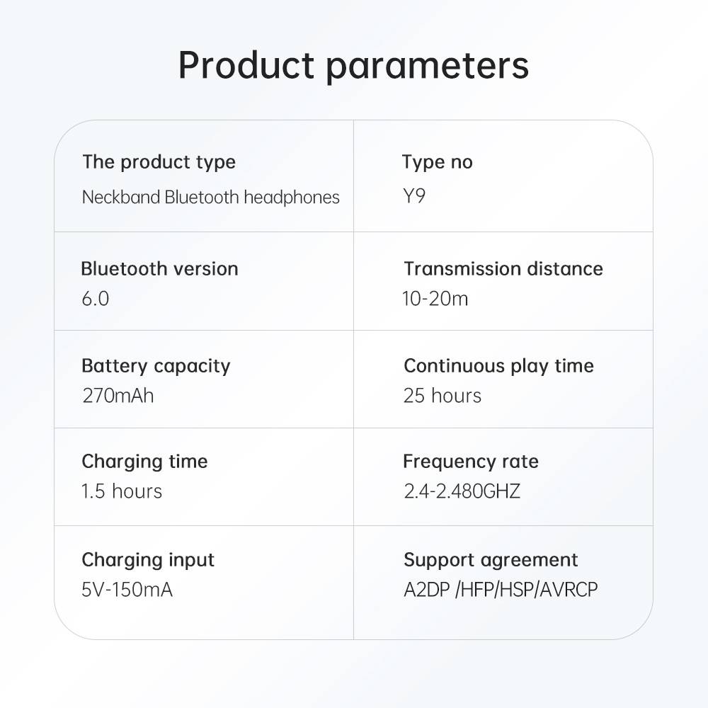 Stereo sound quality, high battery, neck hanging Bluetooth earphones Y9J in ear/Y9R semi in ear