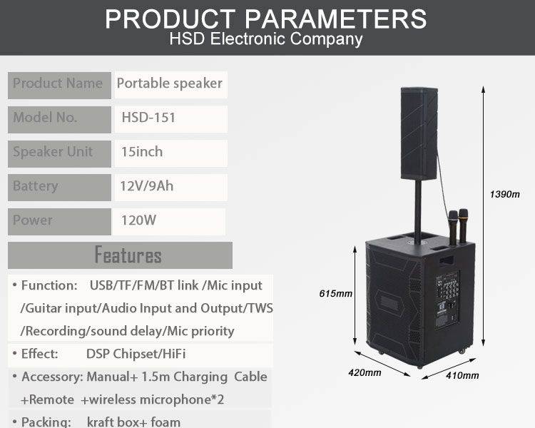 2.function:Bluetooth/USB/FM/Microphone input 3.Output:120W