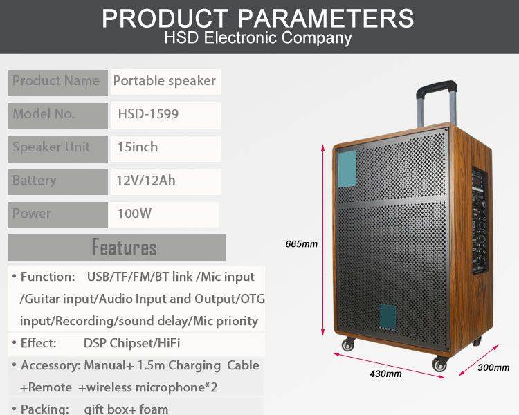 4.Lead acid Battery:12V7A 5.Metal Net 6.Accessories:AC charger line++UFH wireless mic*2+remote+Instruction 7.Packing:Brown box +Foam