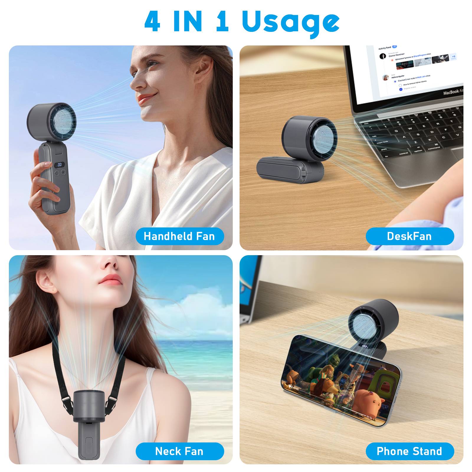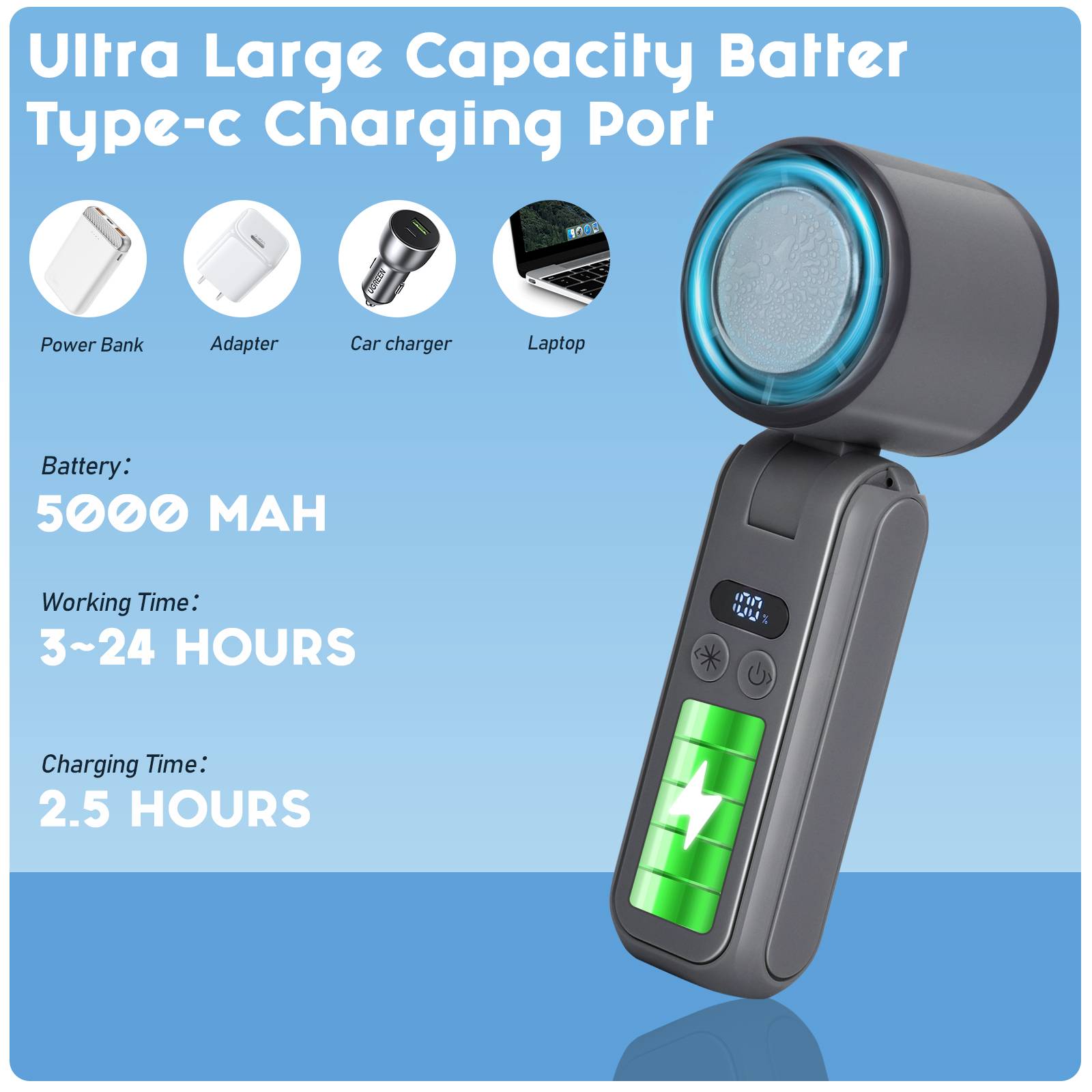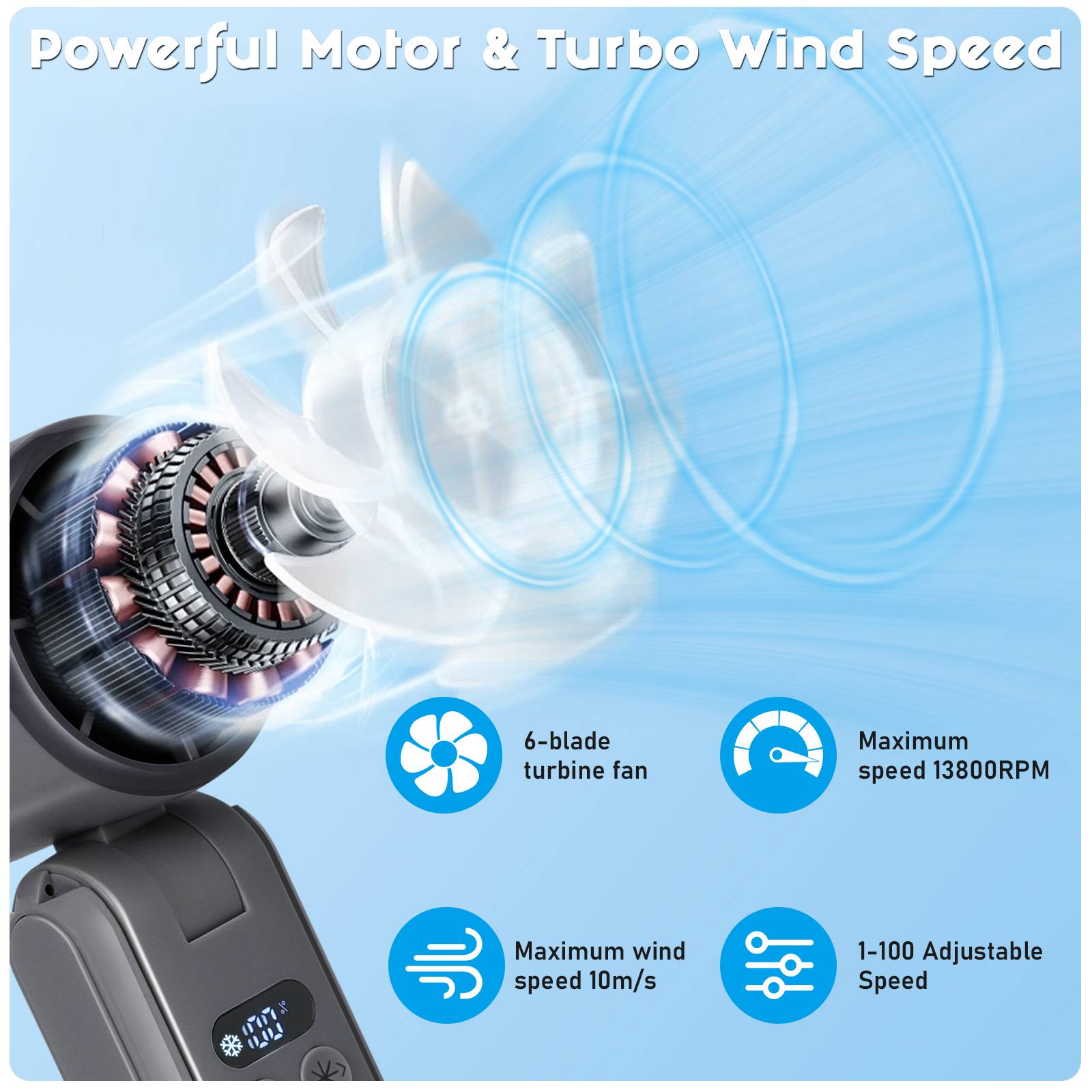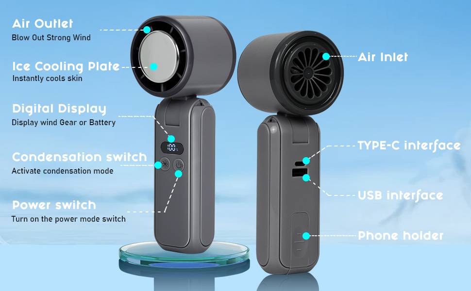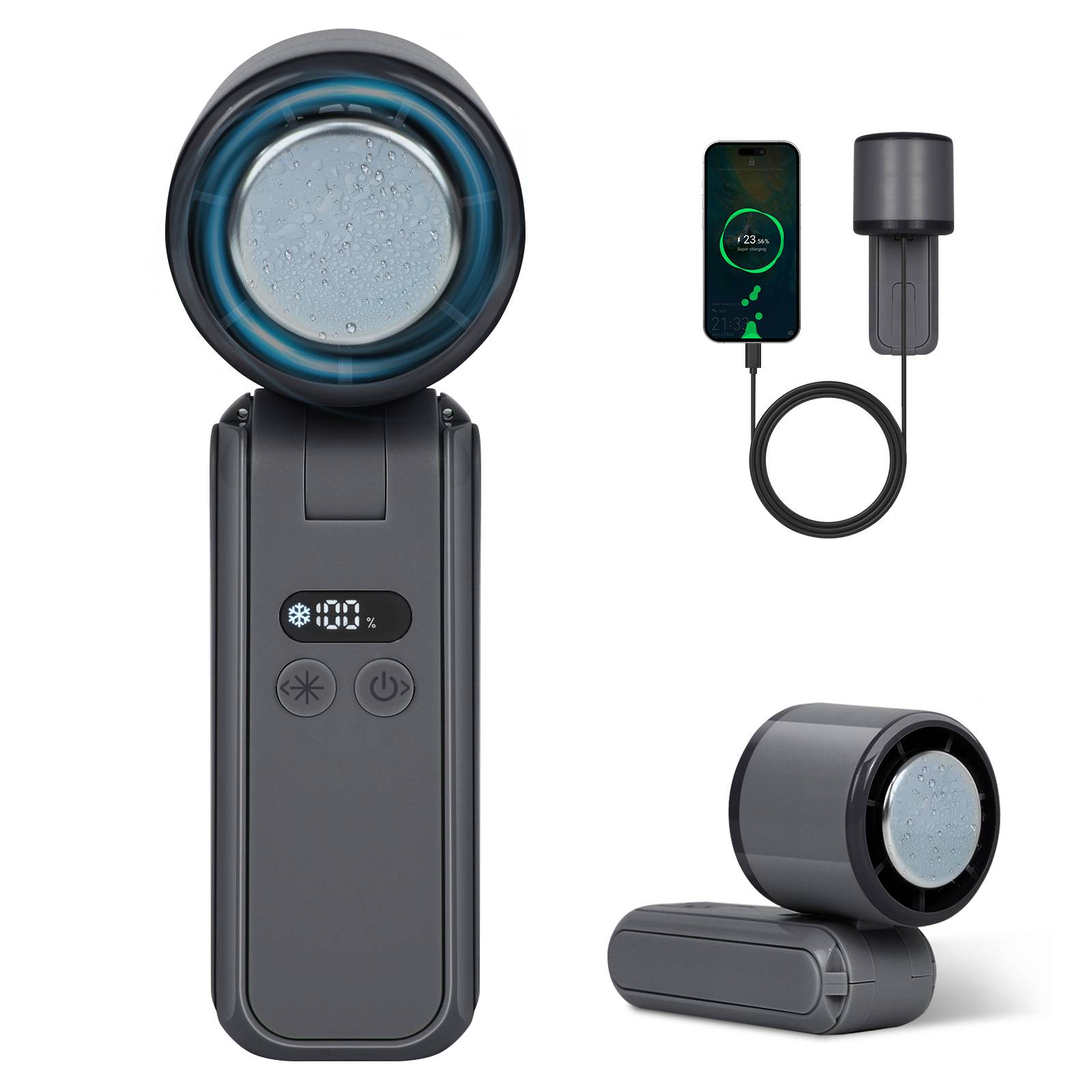 New cooling high-speed small fan for 2025, turbocharged ultra large wind power, 4000mAh 18650 battery, USB fast charging, mobile power function, LED screen digital display, 100 level wind power, 13800 RPM high speed, semiconductor large cooling chip 3-second speed ice, desktop phone holder function, neck/waist hanging use, stable product quality, affordable price from the original factory!