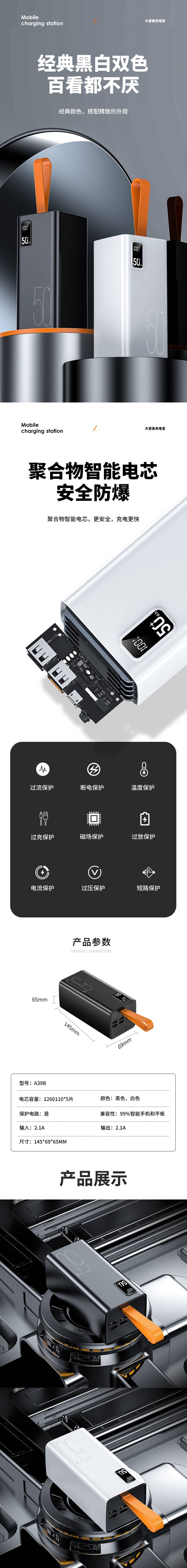 Intelligent digital display with dual line fast charging and large capacity mobile power bank