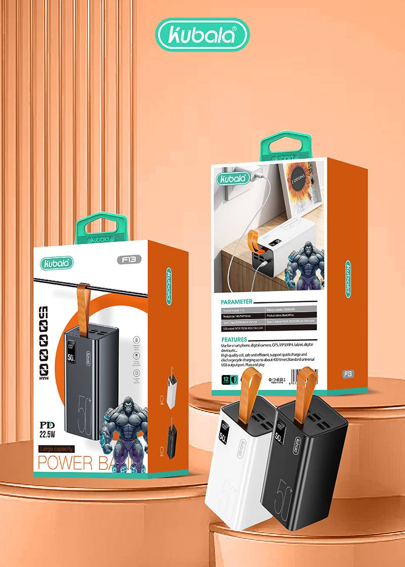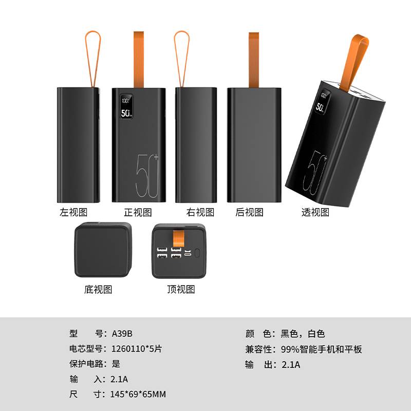 22.5W super fast charger with built-in charging cable, large capacity of 50000mAh
