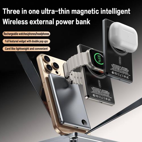 Three in one ultra-thin magnetic intelligent wireless external power bank